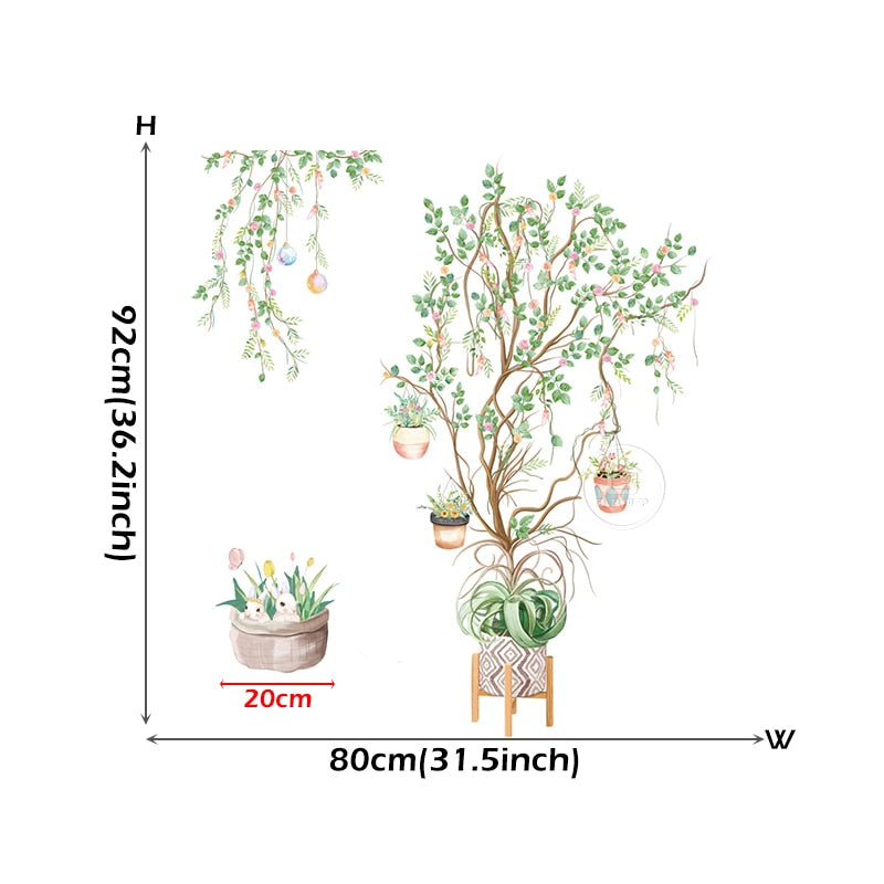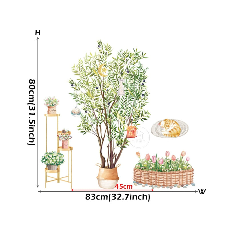theme: Big Tree Birch Wall Stickers Green Leaves Wall Decals