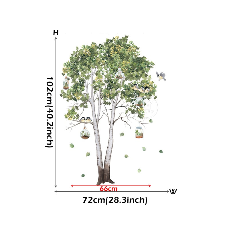 Big Tree Birch Wall Stickers Green Leaves Wall Decals Living Room Bedroom Birds Home Decor Poster Mural PVC Room Decoration