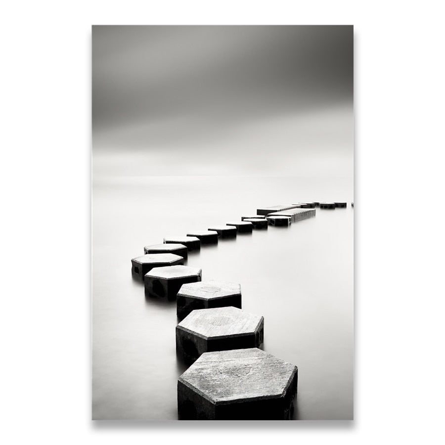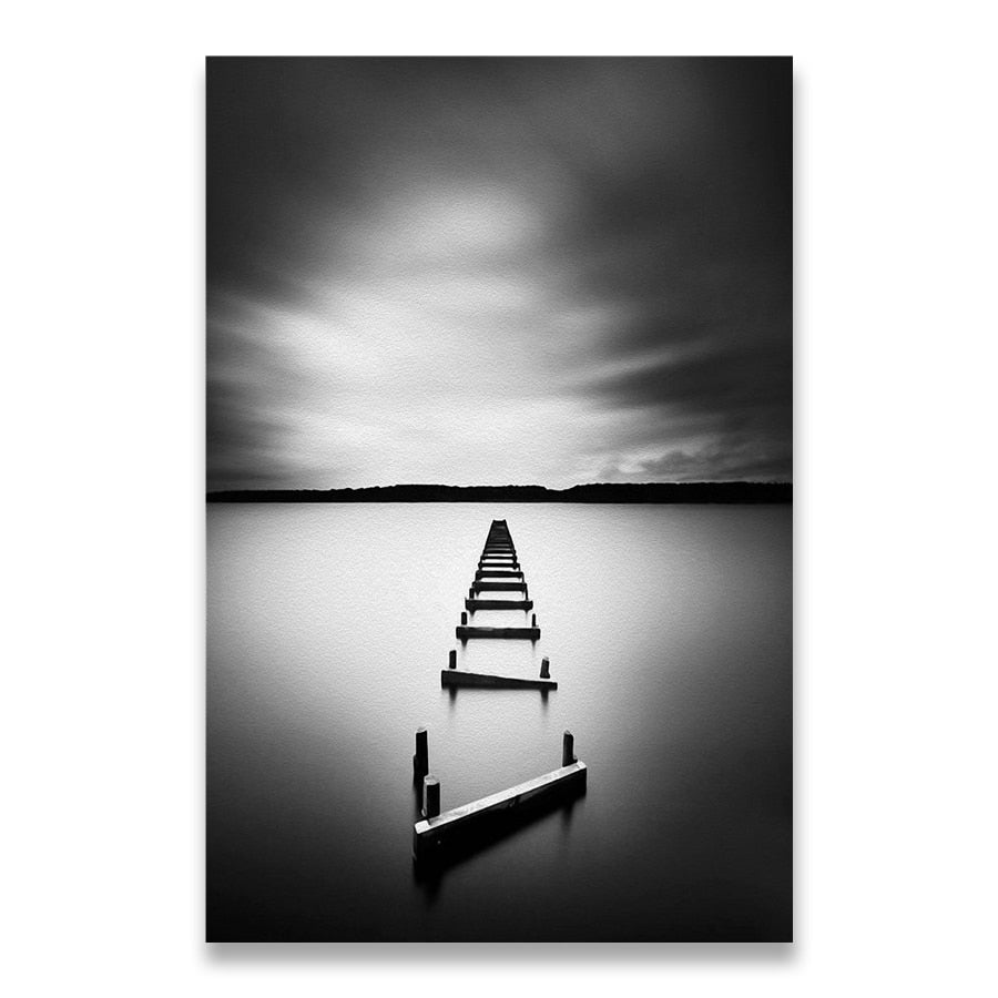 Black and White Landscape Canvas Painting Stone Wooden Bridge Posters Wall Art Print Pictures for Living Room Home Decor