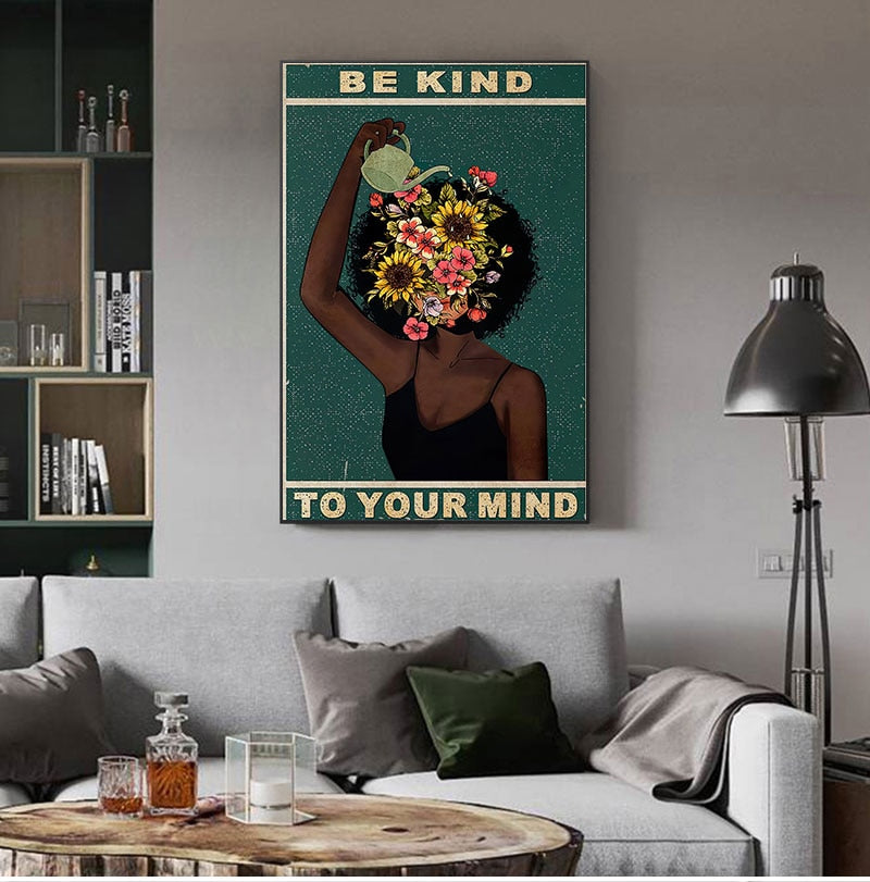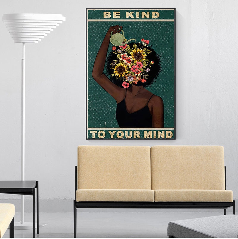 Black Girl Mental Health Poster Mental Be Kind To Your Mind Positive Art Prints African Woman Vintage Canvas Painting Home Decor