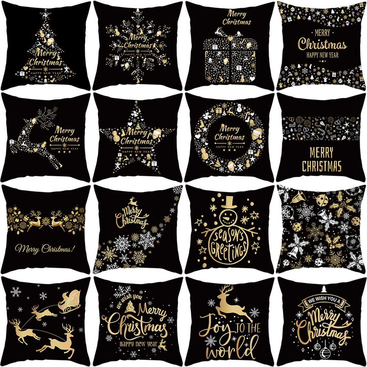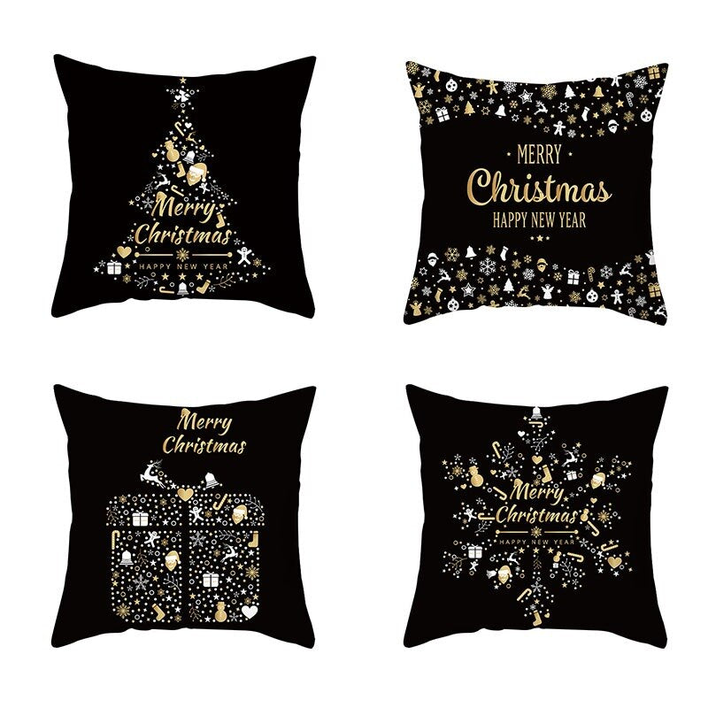 Black Gold Christmas Pillowcase Snowflake Elk Xmas Tree Pillow Merry Christmas Decoration for Home Navidad Present Noel 2021 New