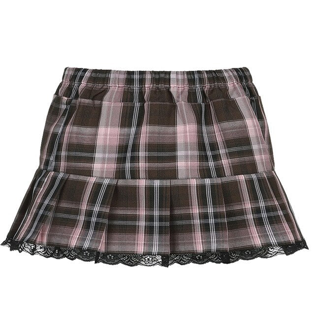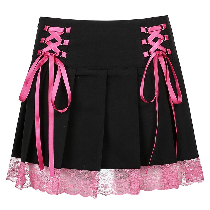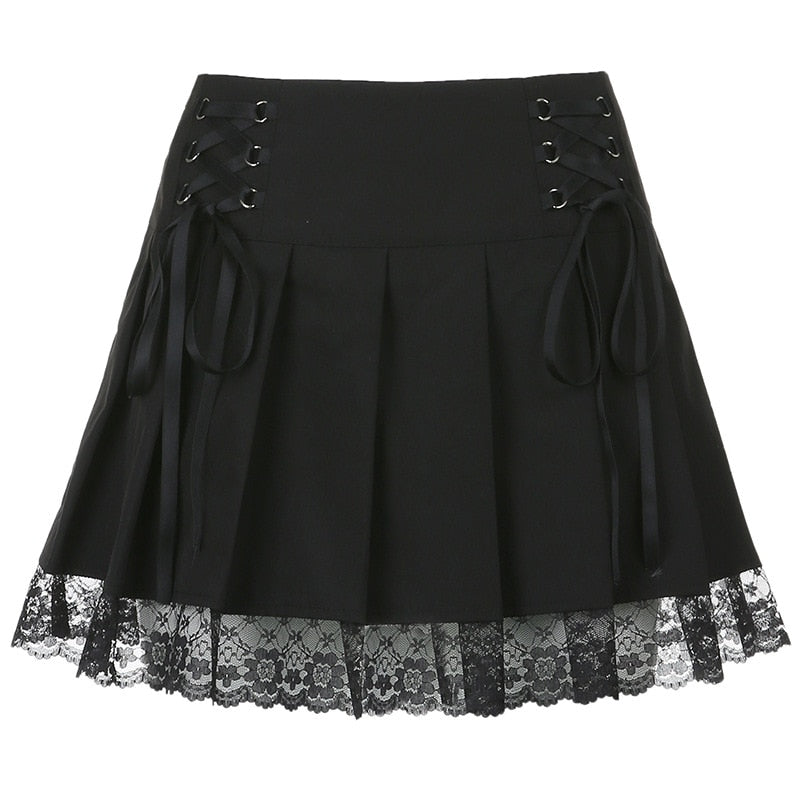 Black Goth Aesthetic Pleated Skirts Women Lace Low Waist Mini Skirt Punk Dark Y2K Dance Streetwear Ladies Sexy Short Skirt 2021