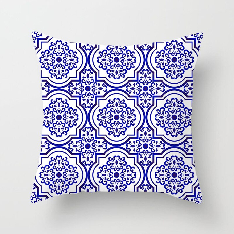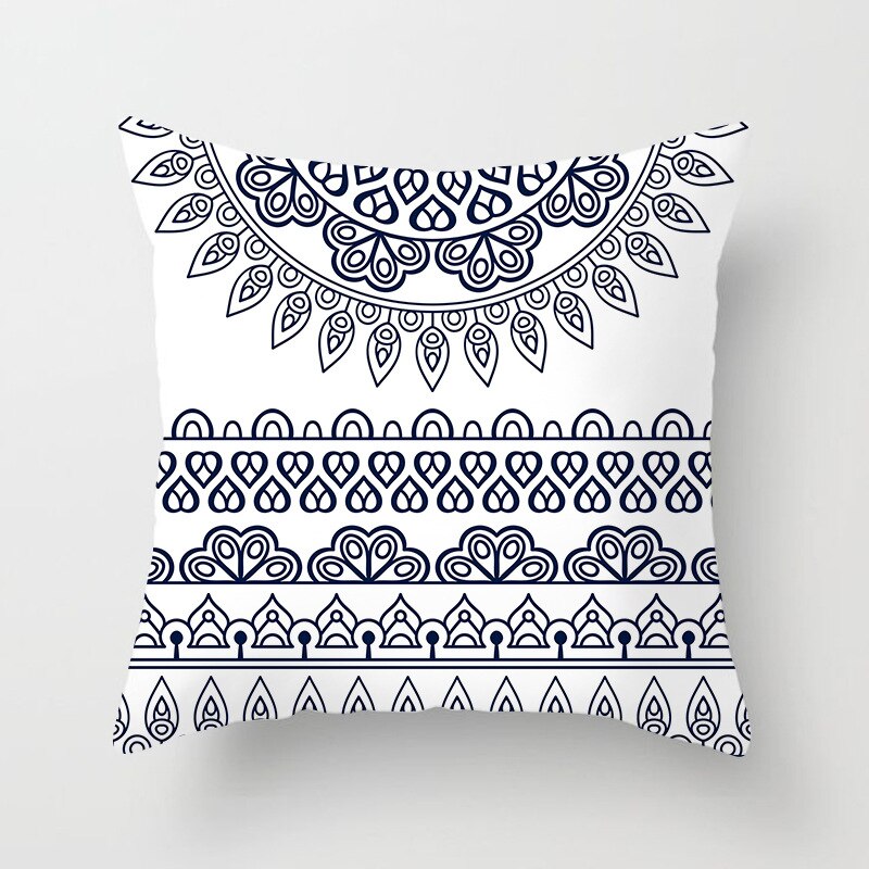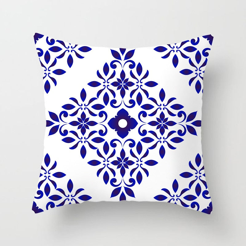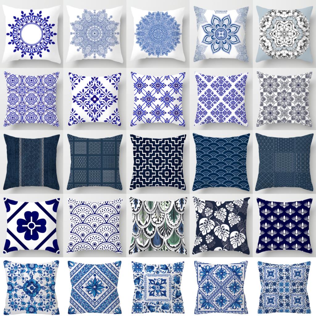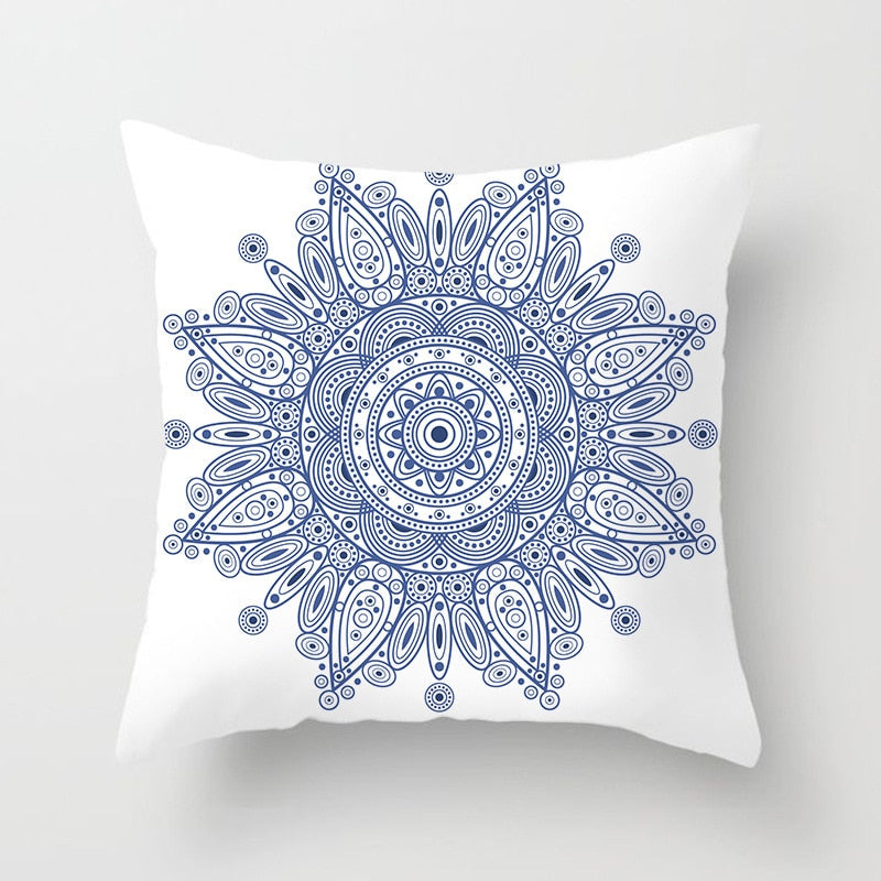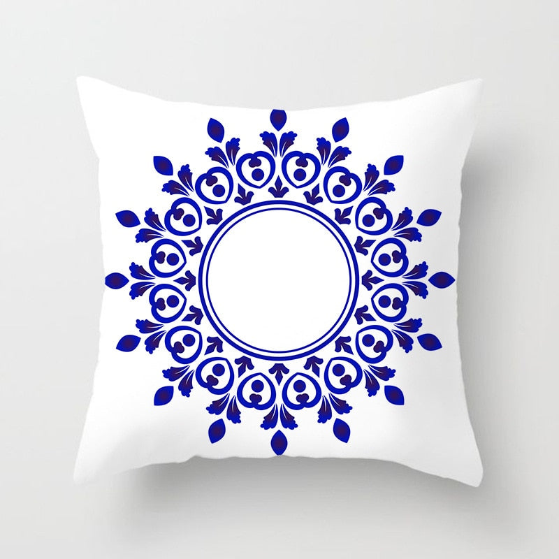 Blue White Porcelain Print Cushions Case Bohemian Style Mandala Geometry Pillows Case Modern Fashion Sofa Chairs Throw Pillows