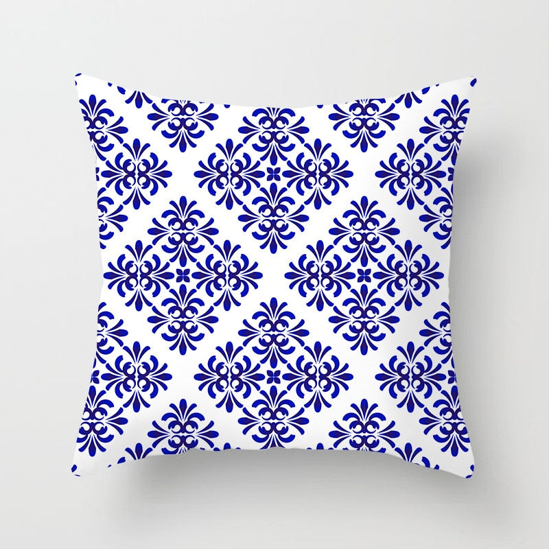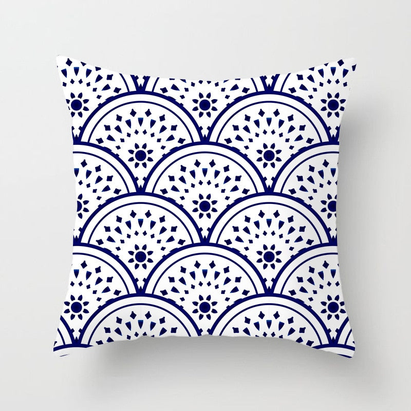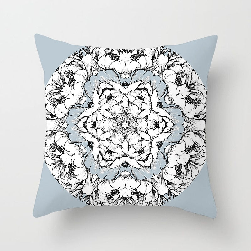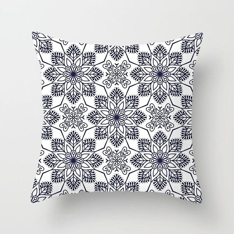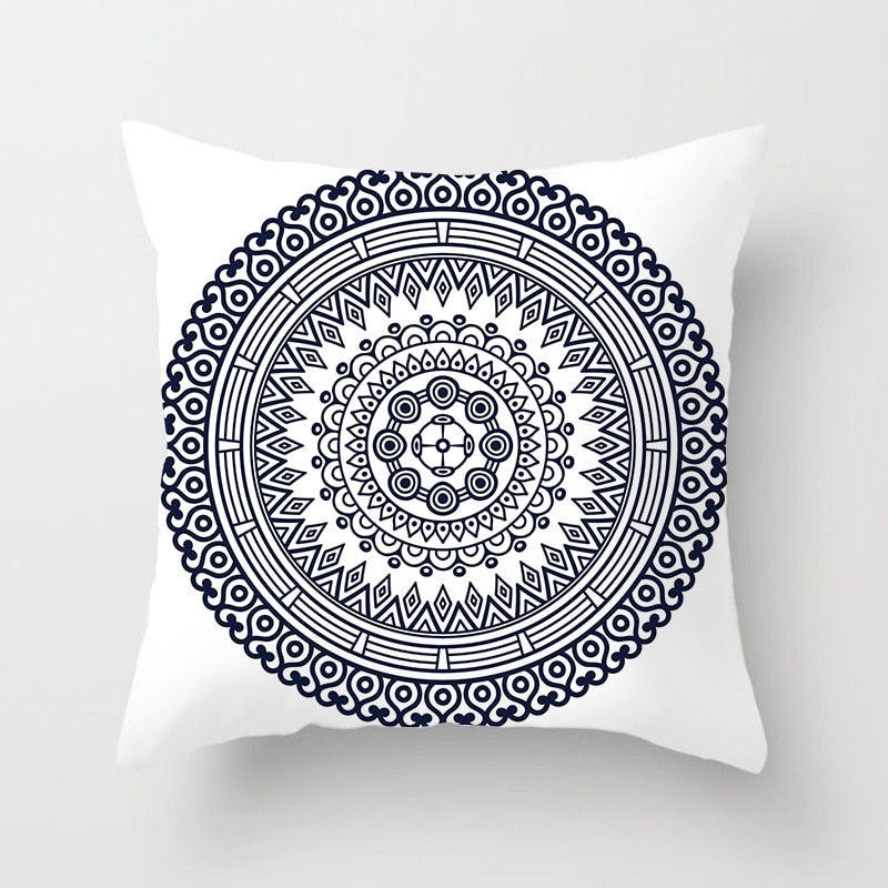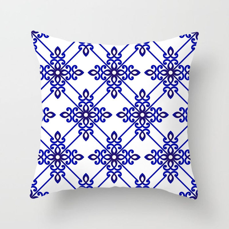 Blue White Porcelain Print Cushions Case Bohemian Style Mandala Geometry Pillows Case Modern Fashion Sofa Chairs Throw Pillows
