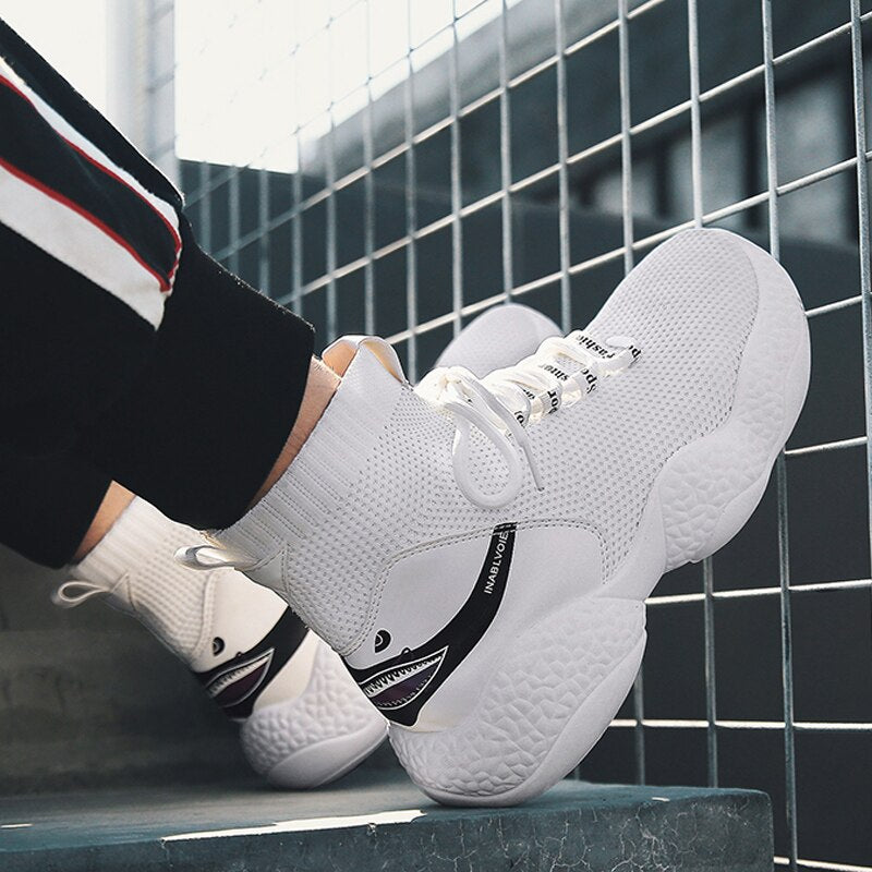 BomKinta New Fashion High Top Retro Casual Shoes Men Fashion Brand Breathable Sock Shoes Men Shark Pattern Damping Sneakers Men