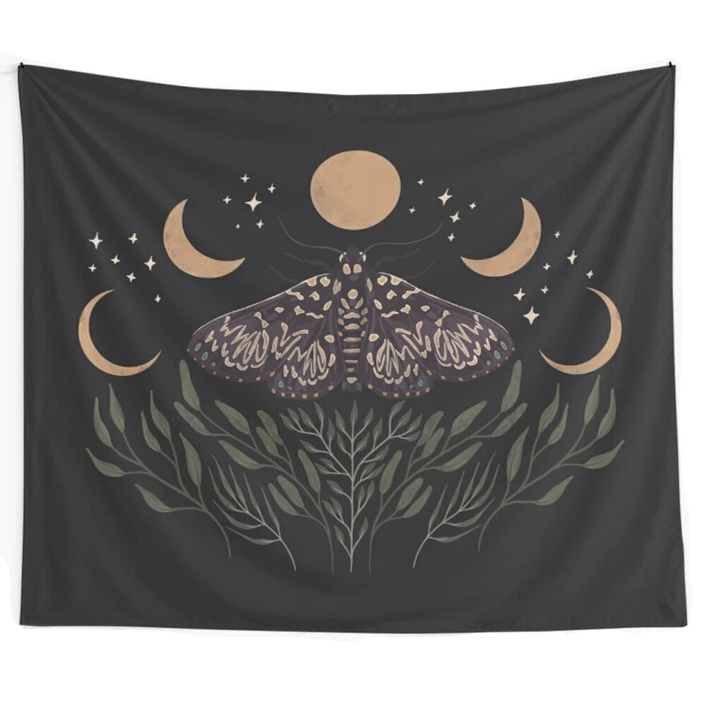 Butterfly Moon Phase Tapestry Wall Hanging Bohemian Gypsy Psychedelic Tapiz Black Sun Witchcraft Divination Tapestry Decor