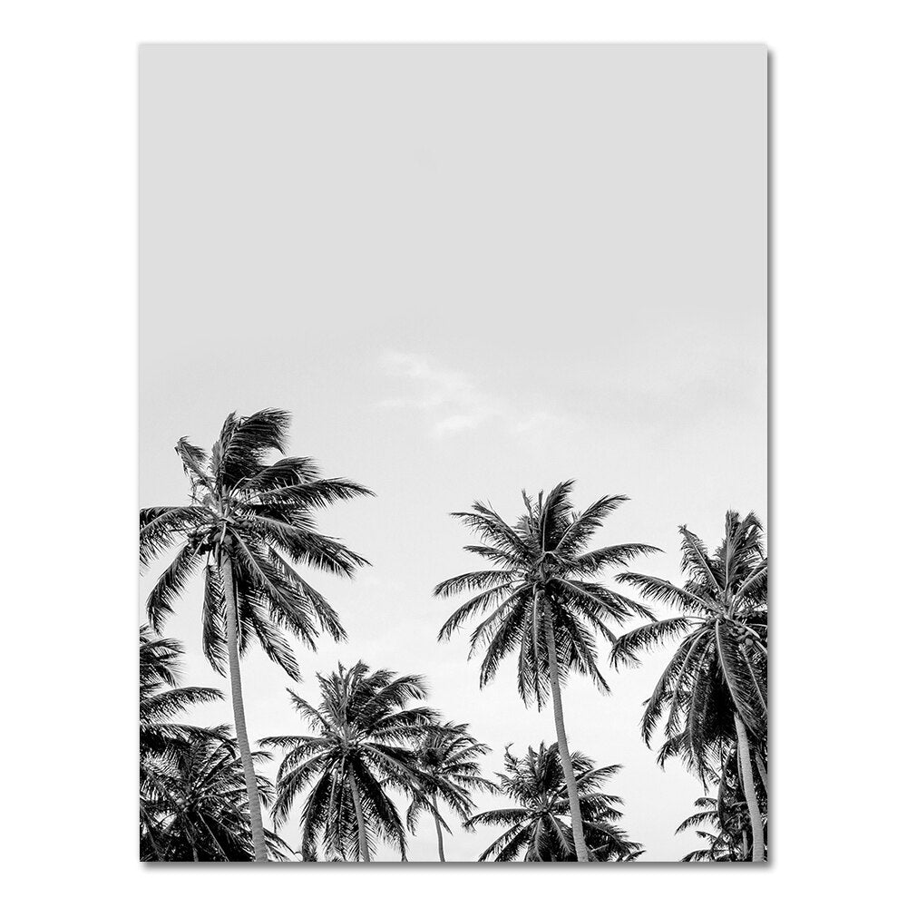 Camper Van Beach Surf Print Palm Tree Art Canvas Painting Black and White Photography Ocean Poster Boho Decor for Living Room