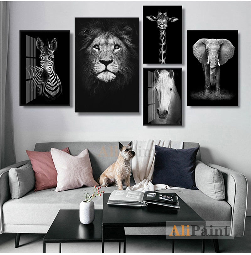 Canvas Painting Animal Wall Art Lion Elephant Deer Zebra Posters and Prints Wall Pictures for Living Room Decoration Home Decor