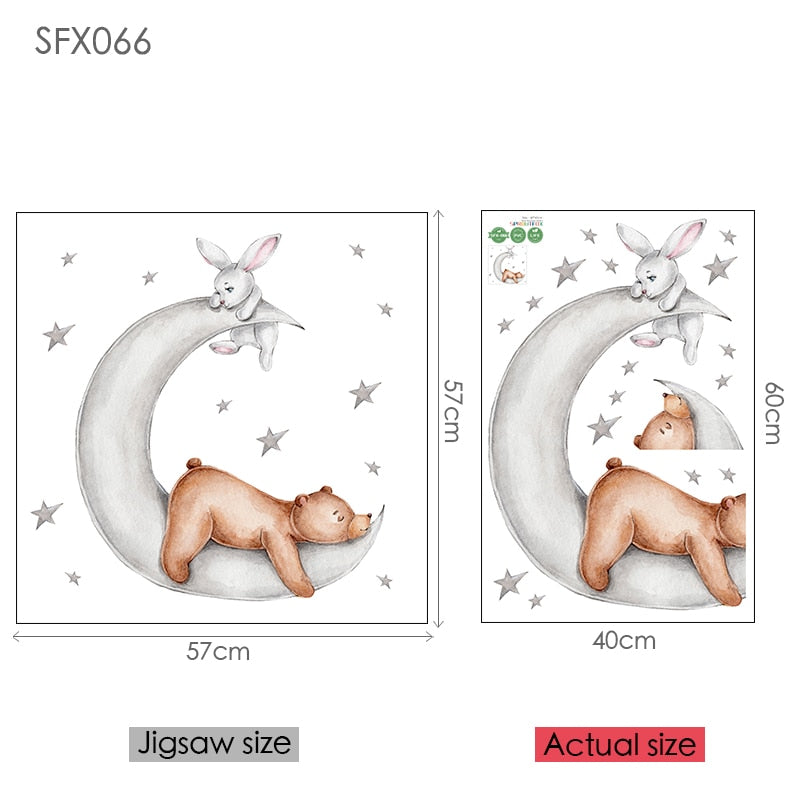 Cartoon Animal Bunny Bear Wall Sticker For Kids Room Baby Girl Room Sleeping on the Moon Stickers Nursery Bedroom Kids Stickers