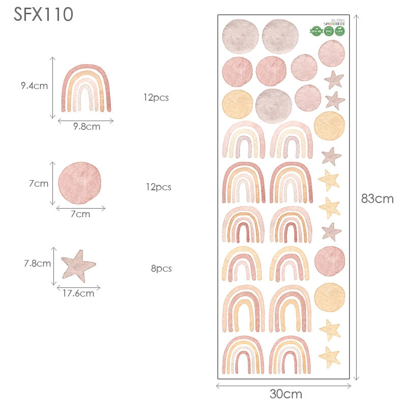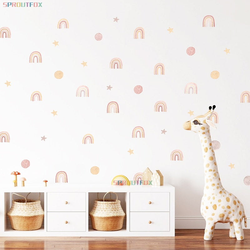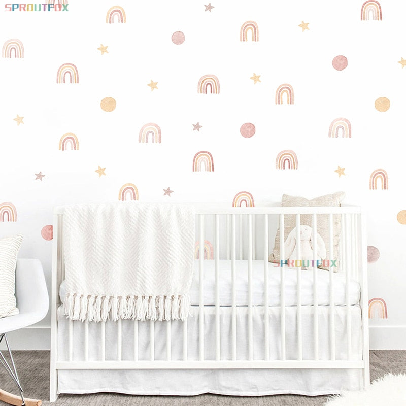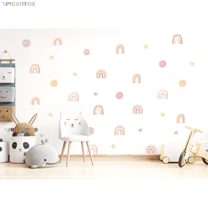 Cartoon Boho Rainbow Wall Sticker for Baby Room Children Room Cute Polka Dot Stars Nursery Stickers Home Decoration