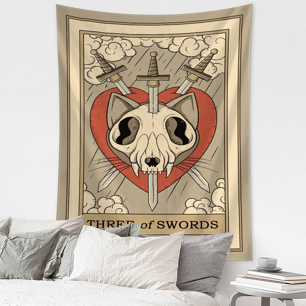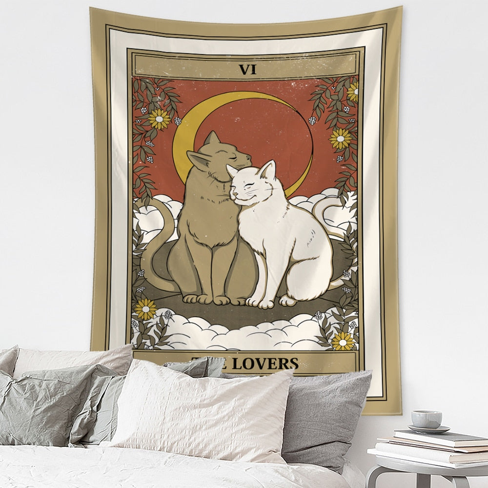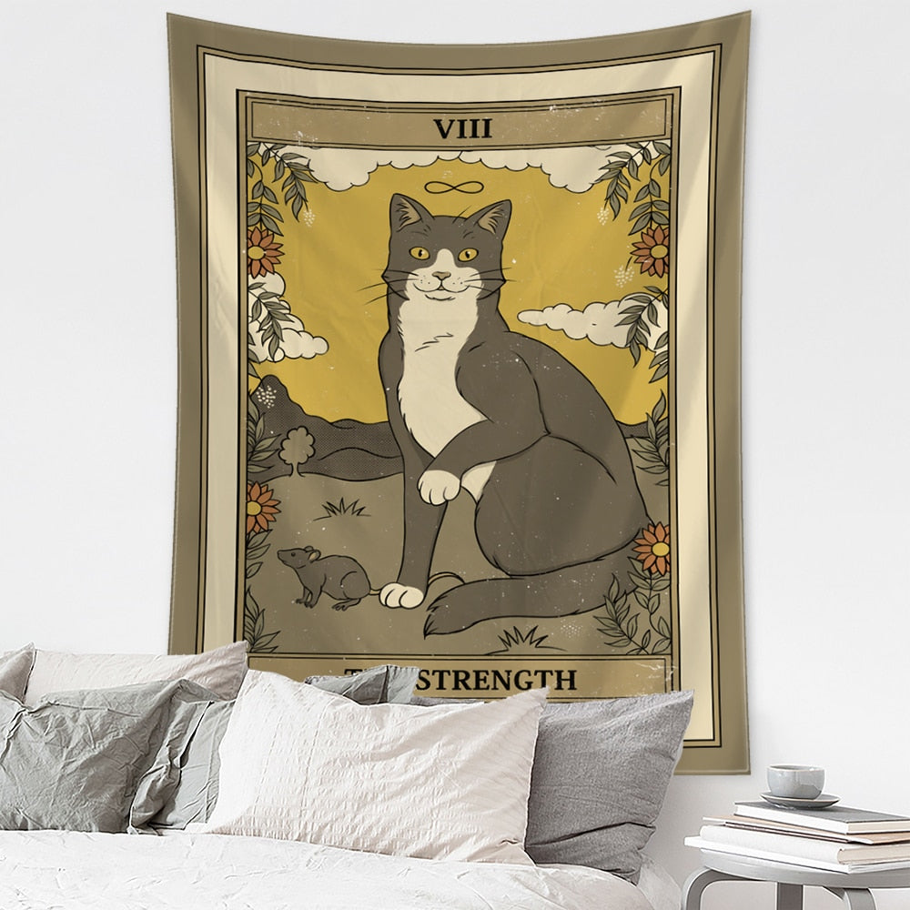 Cartoon Cat Tarot Tapestry Wall Hanging Mysterious Psychedelic Witchcraft Tapiz Hippie Kawaii Home Decor