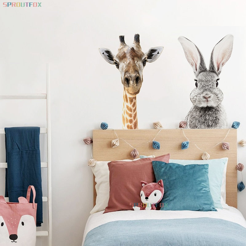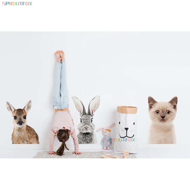 Cartoon Cute Animals Wall Stickers Girafee Rabbit Deer Lion Dog Cat for Baby Boys Room Nursery Home Decoration KIds Animal Decal