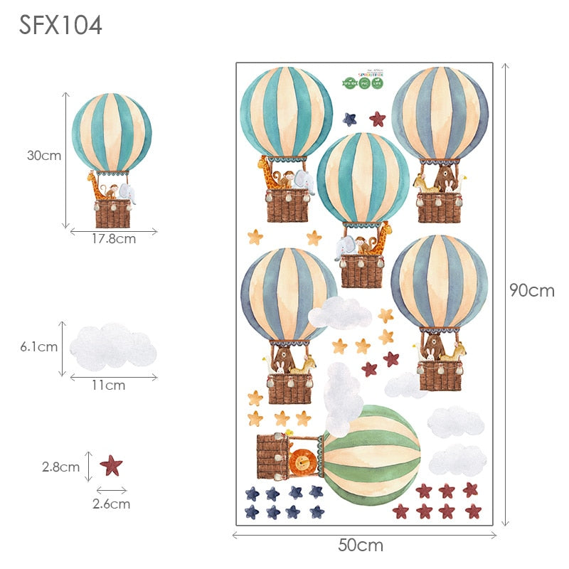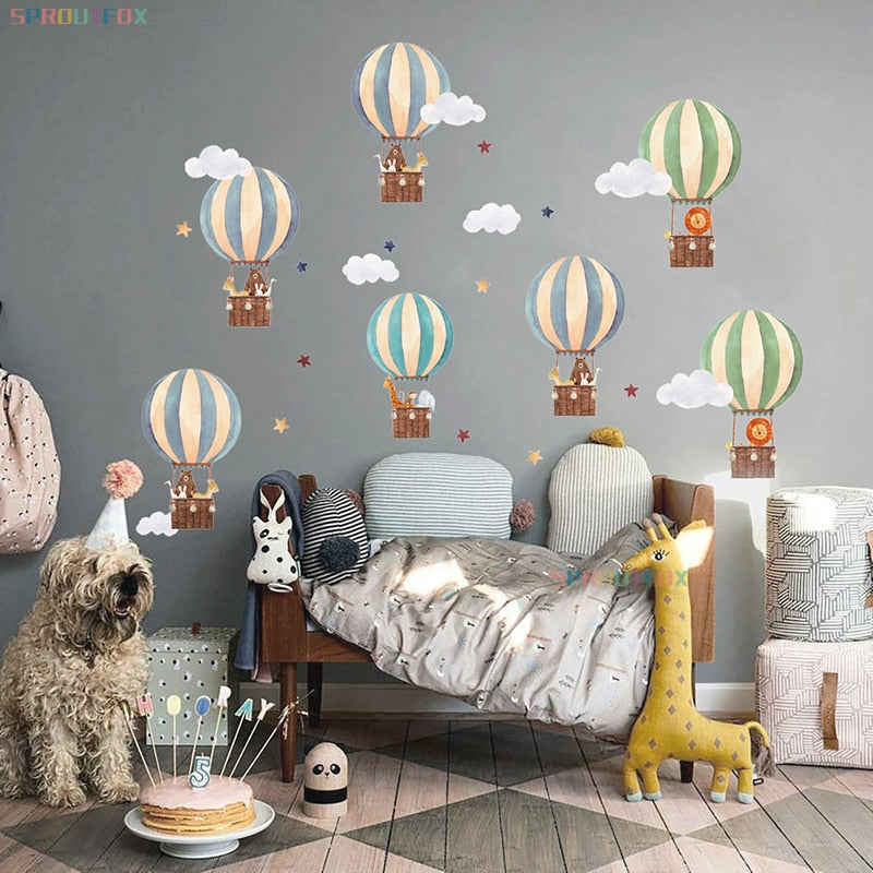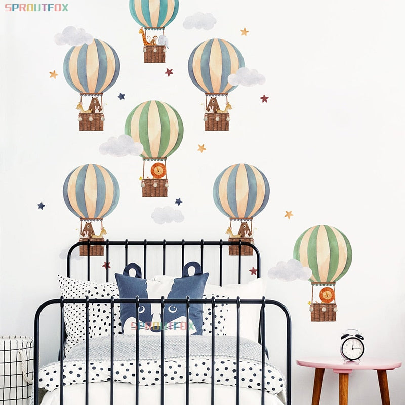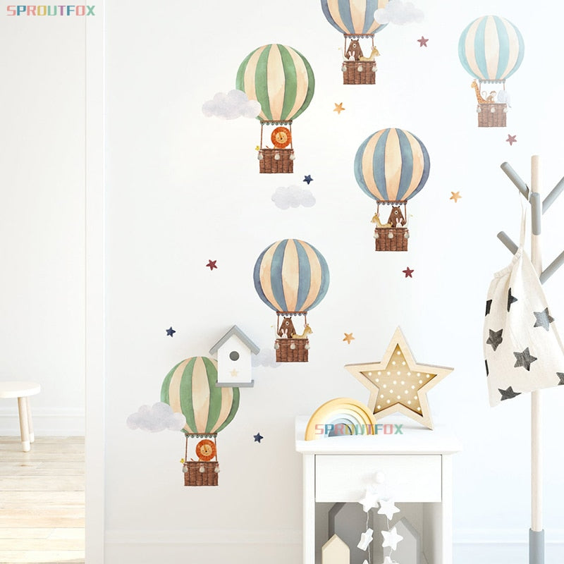 Cartoon Hot Air Balloon Wall Sticker for Baby Boys Room Living Room Brave Animals Lion Girafee Monkey Bear Nursery Kids Stickers