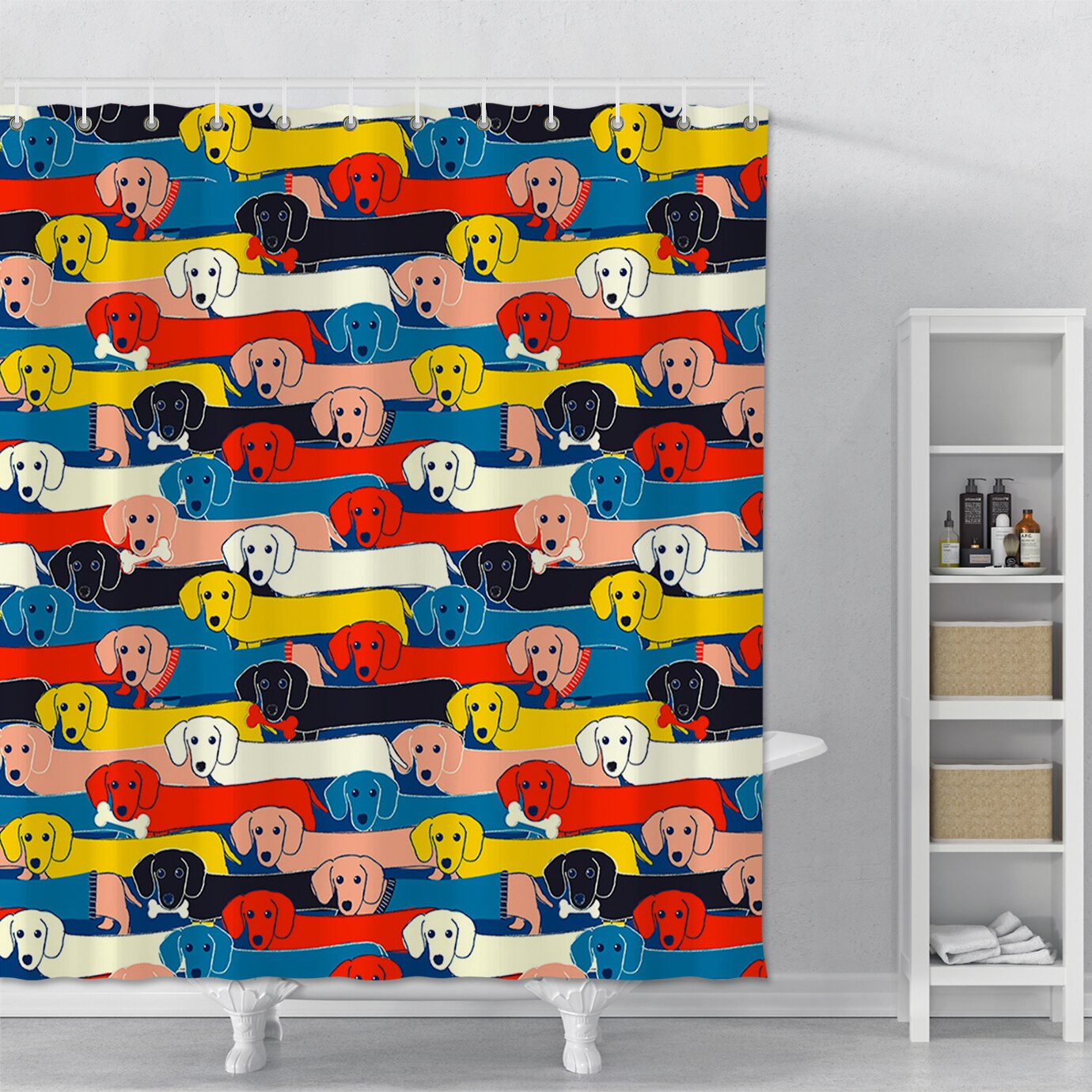 Cartoon Shower Curtain Printed Dachshund Waterproof Polyester Bathroom Shower Curtain Animals Bathroom Shower Curtain With Hooks