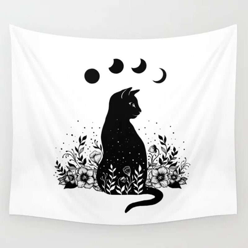 Cat Moon Phase Tapestry Wall Hanging Hand Hippie Floral Witchcraft Decor Tapestries Indian Boho Mandala Wall Carpet Blanket