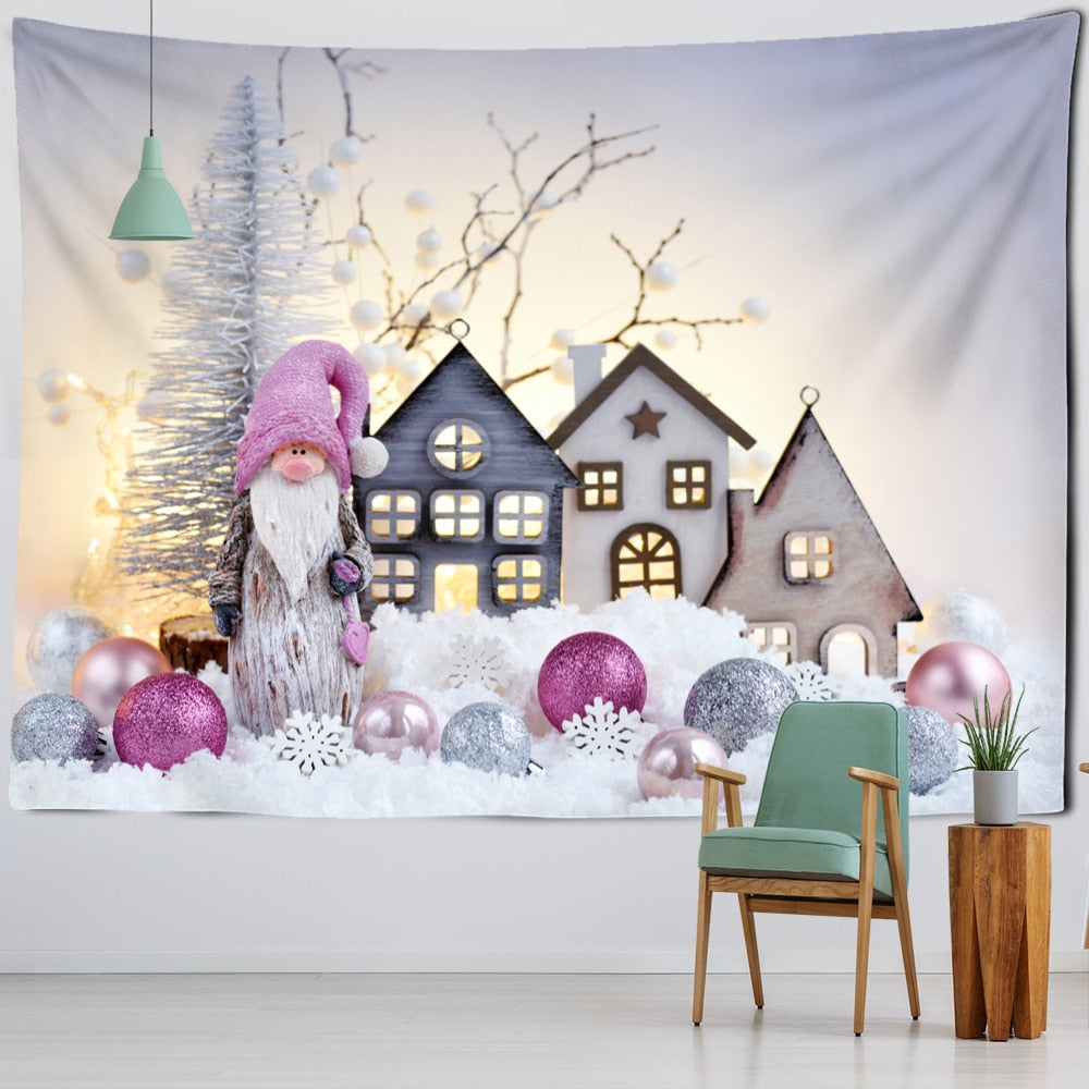 Christmas Cartoon Illustration Tapestry Wall Hanging Cute Kawaii Boho Style Background Cloth Home Decor