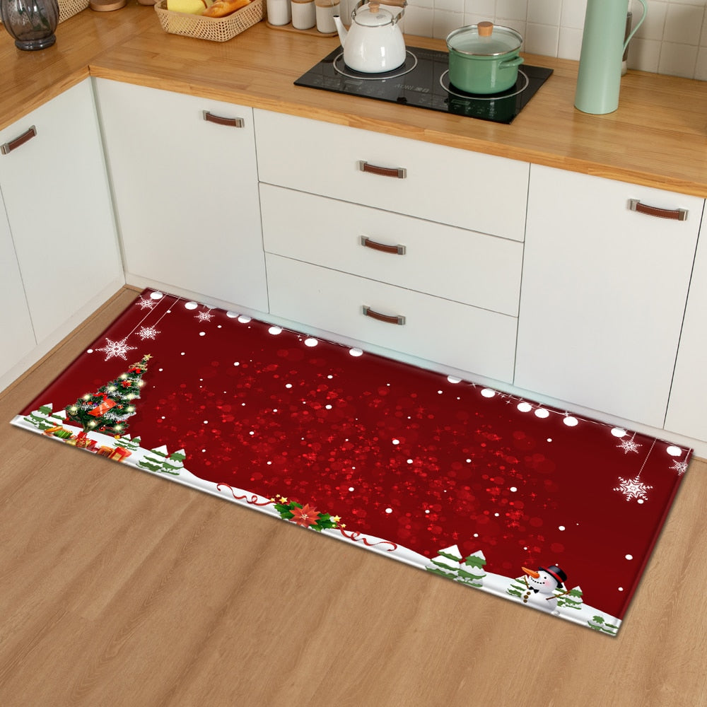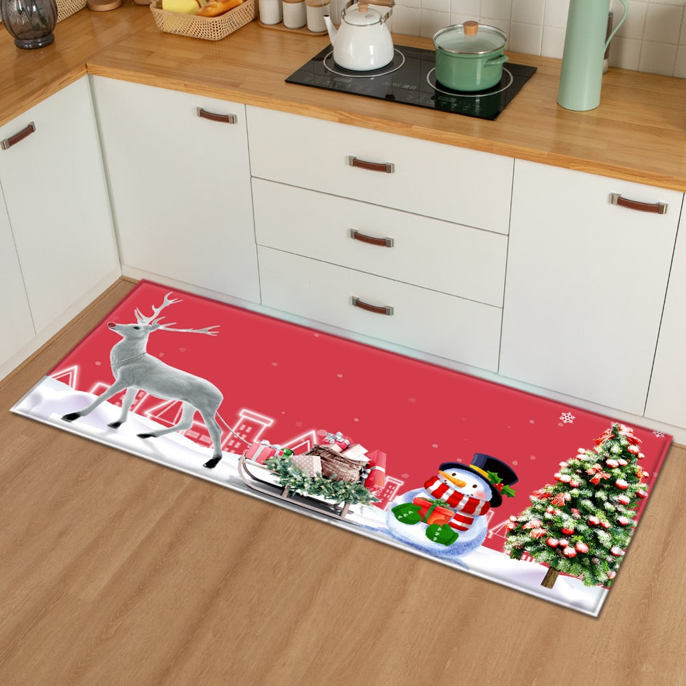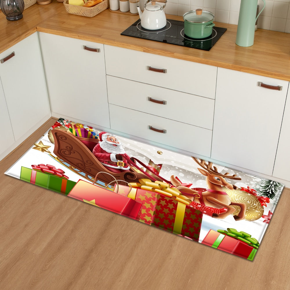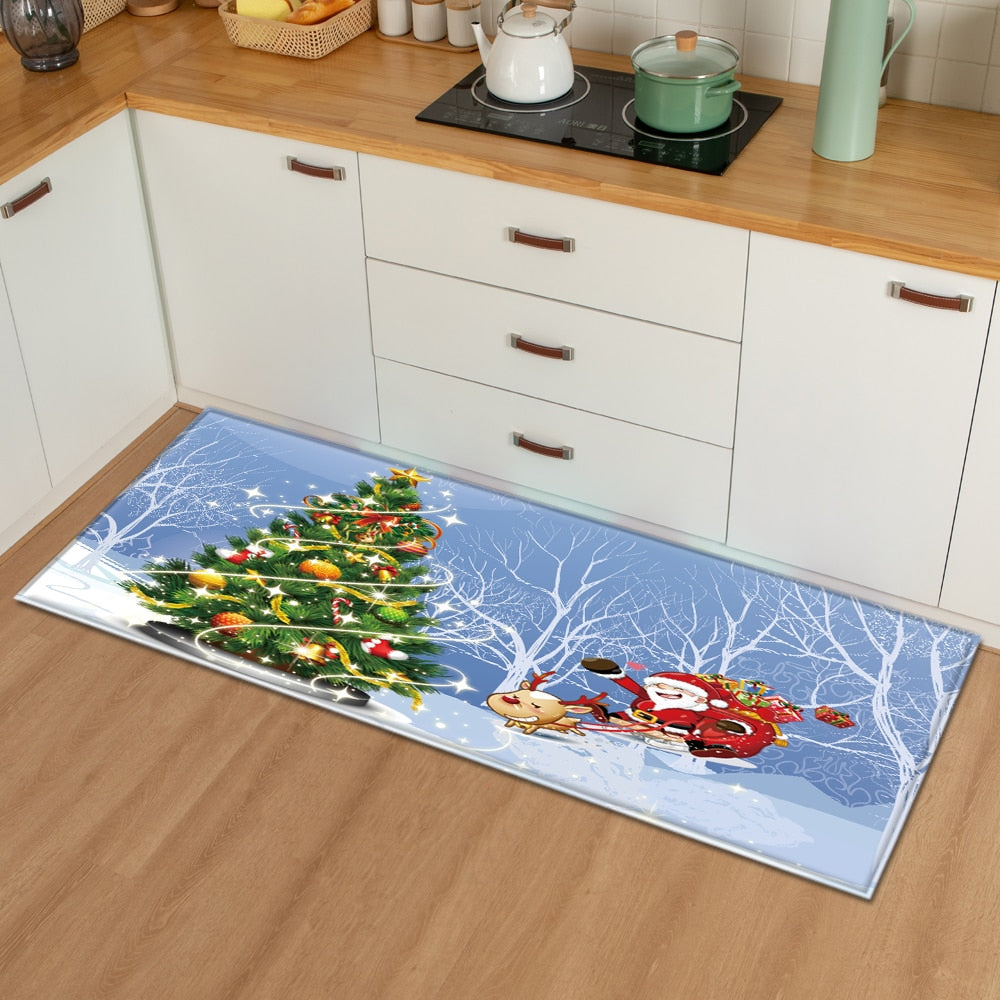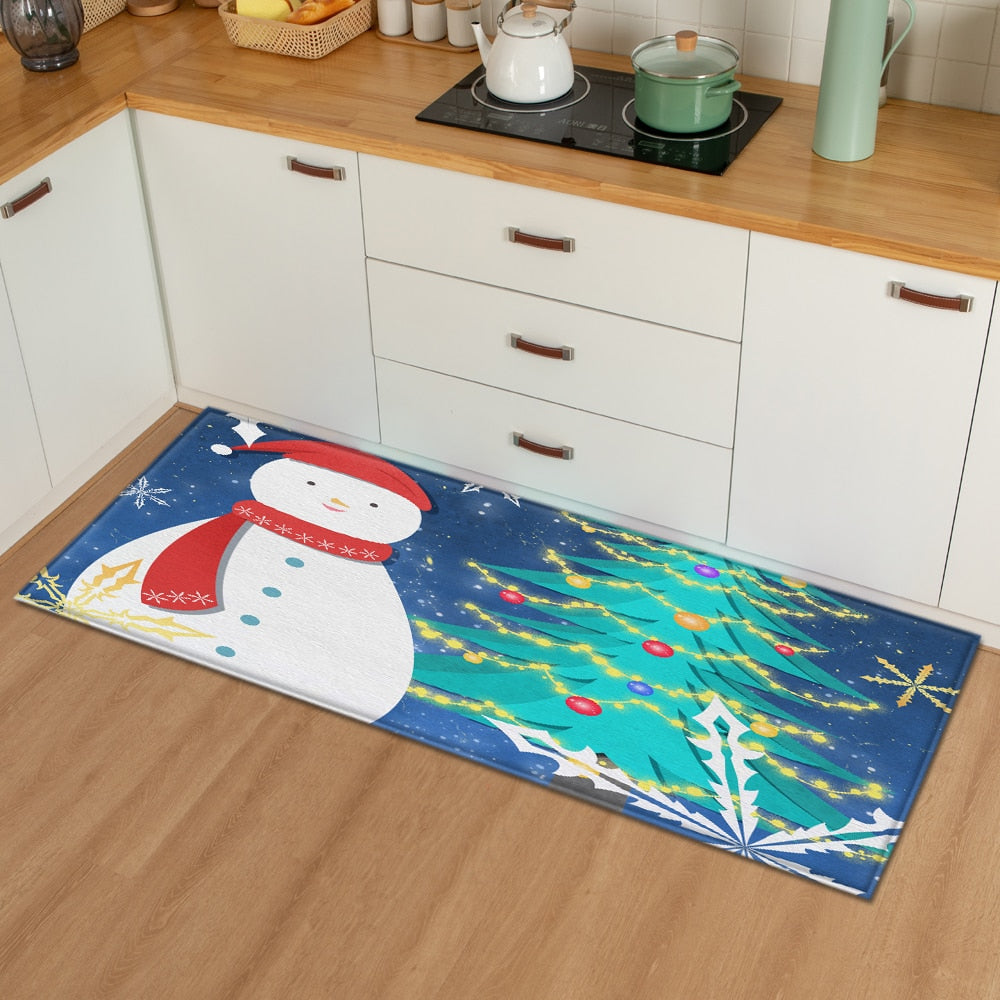 Christmas Kitchen Mat Bedroom Entrance Doormat 3D Pattern Home Floor Decoration Living Room Carpet Bathroom Non-Slip Rug