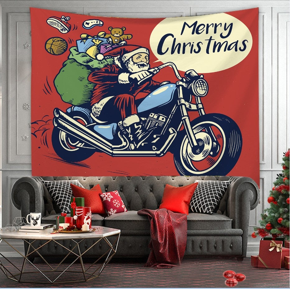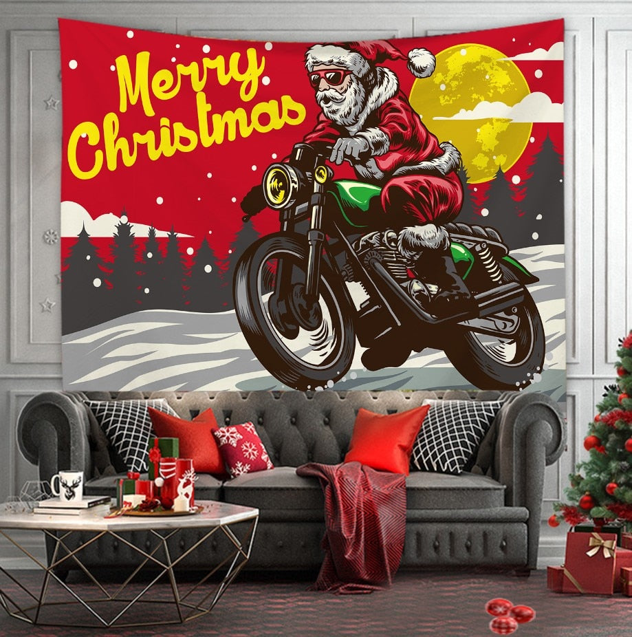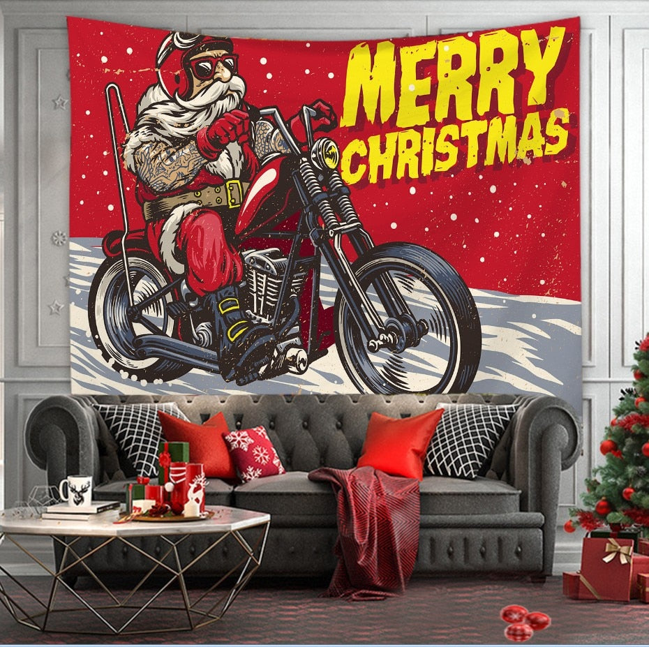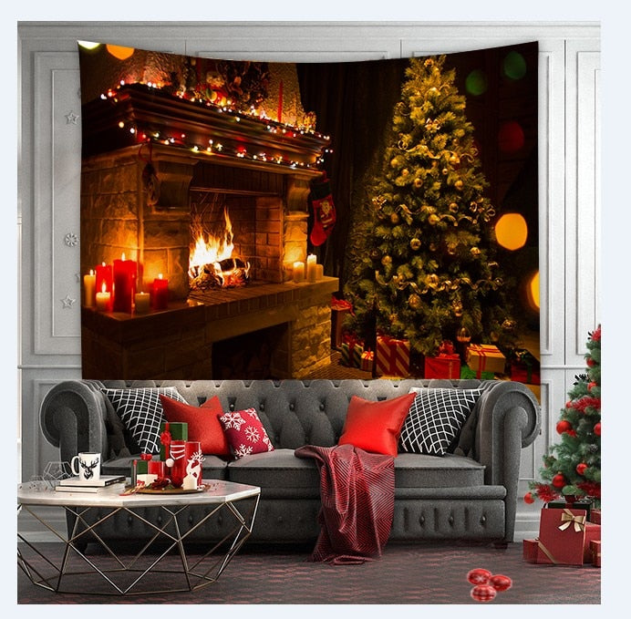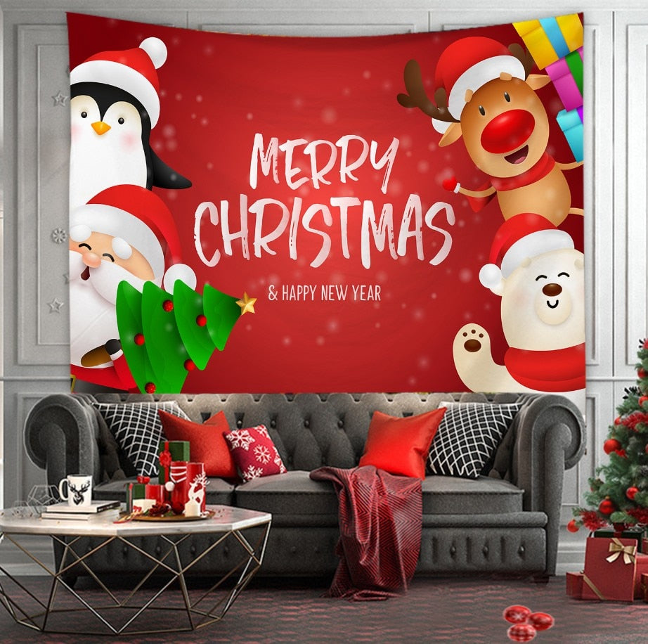 Christmas Tree Print Tapestry Wall Hanging Background Cloth Decor Red Santa Claus Polyester Tapestry Home Room Wall Decoration