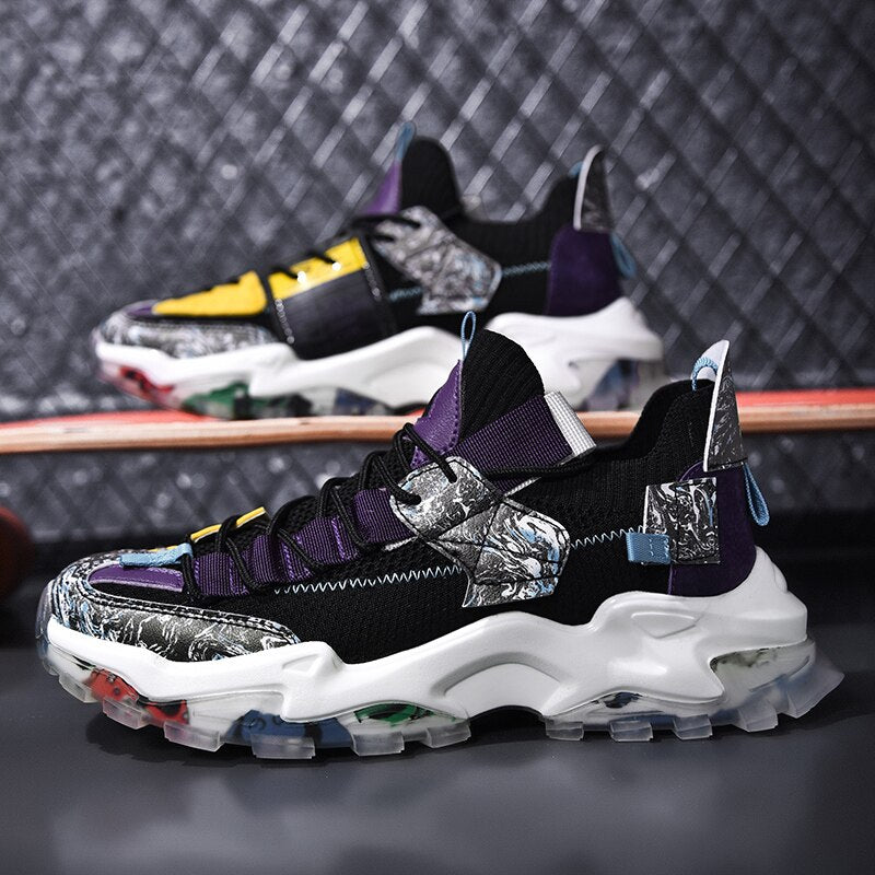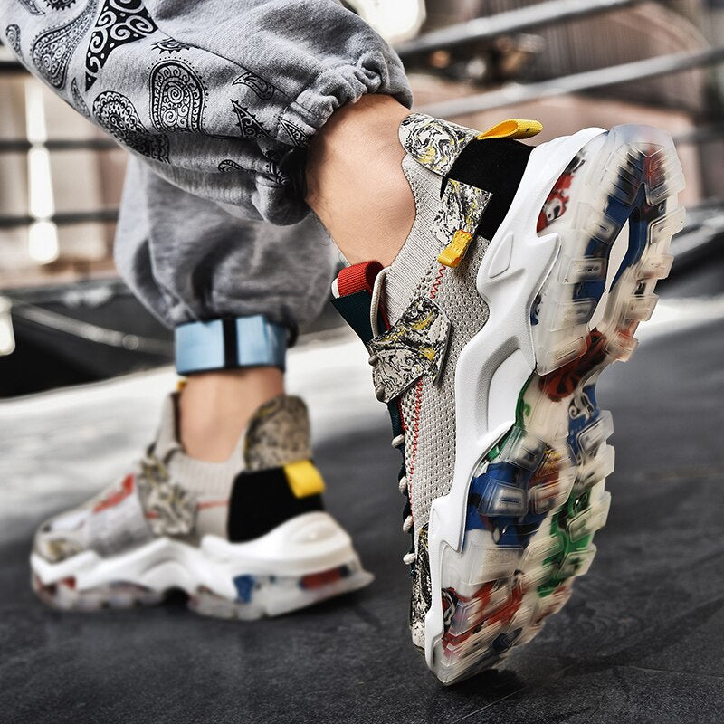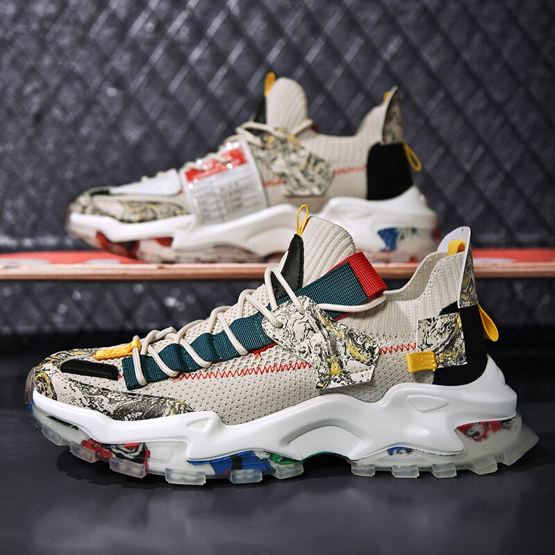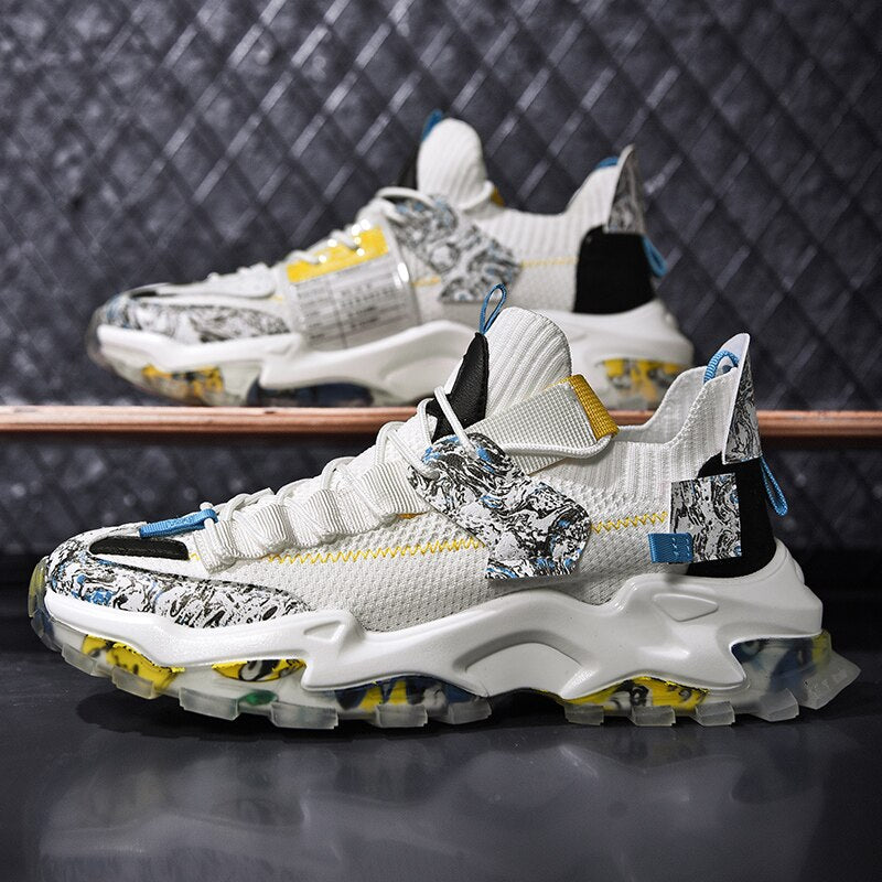 Classic Men Mesh Running Shoes Breathable Sneakers Graffiti Chunky Jogging Shoes Trendy Antiskid Damping Sports Shoes Zapatillas