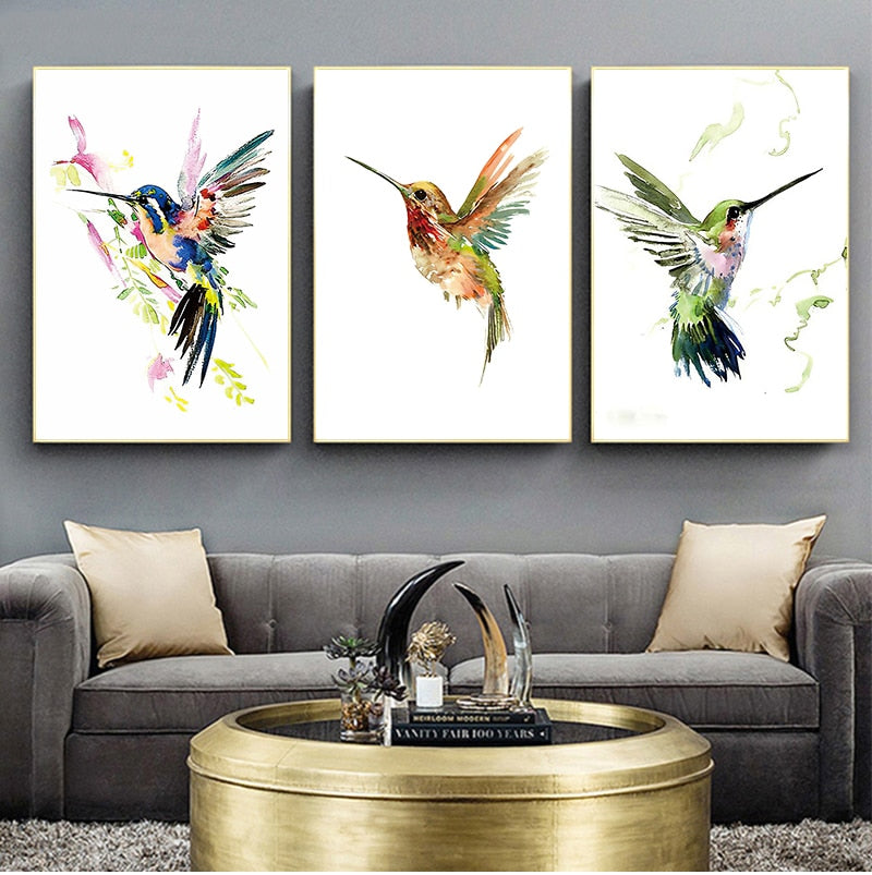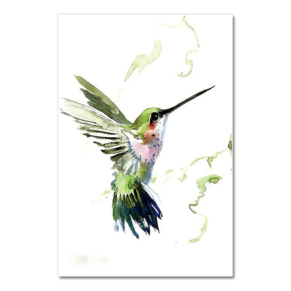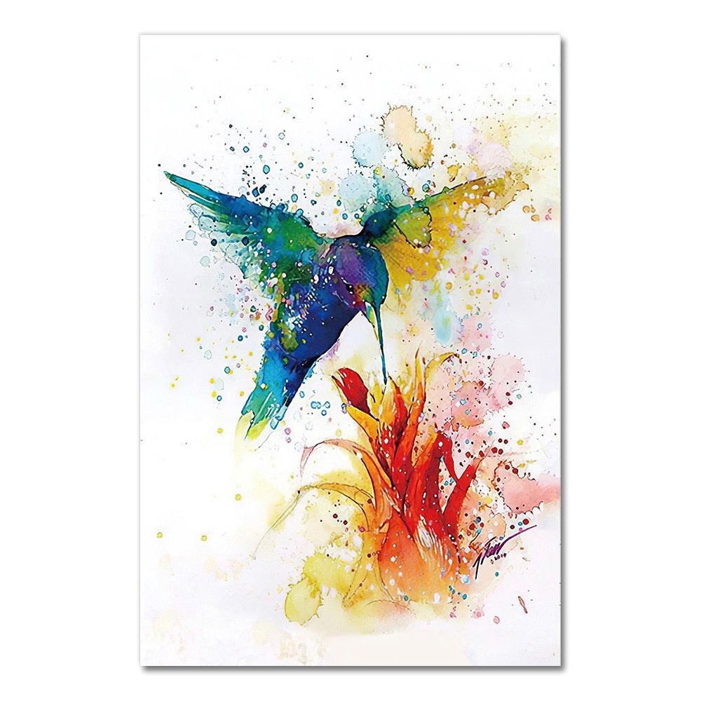 Colorful Abstract Hummingbird Picking Nectar Wall Art Canvas Painting Watercolor Prints Home Decor Pictures Living Room
