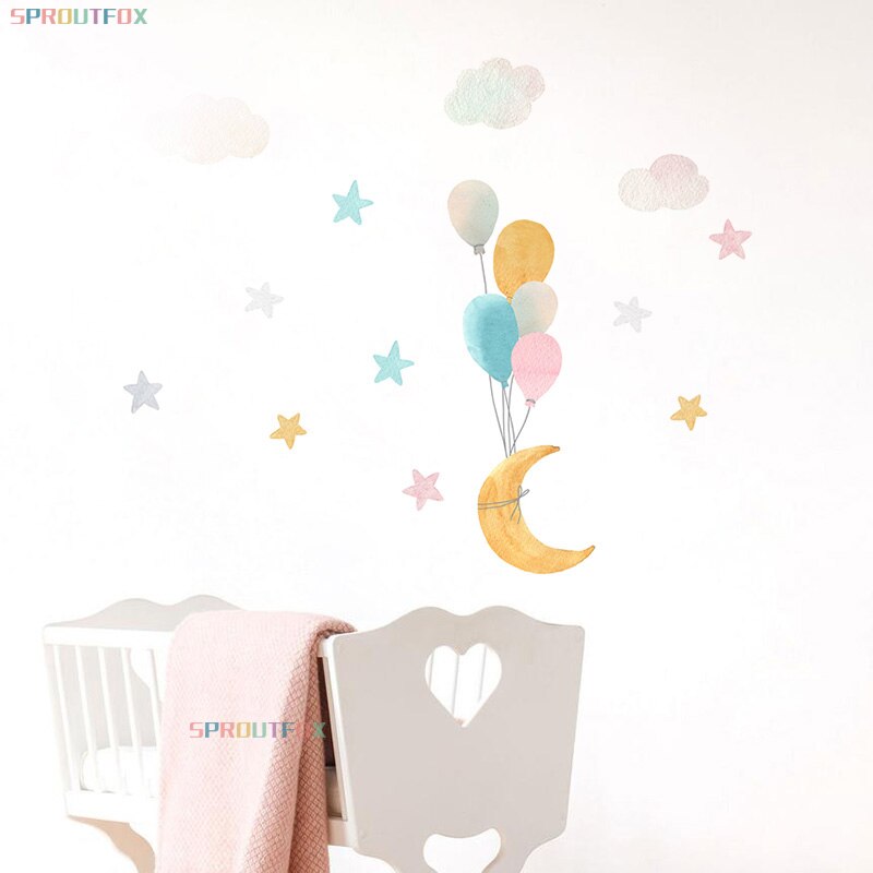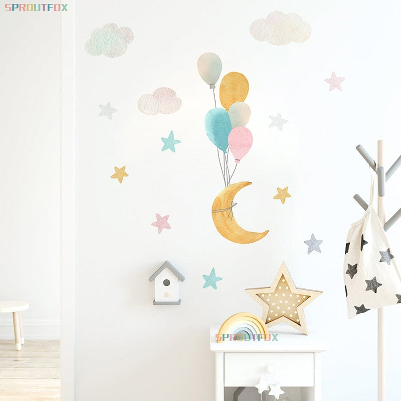 Colorful Balloon Moon Stars Cartoon Wall Stickers for Baby Rooms Door Decoration Stickers Waterproof Vinyl Wall Decal Kawaii