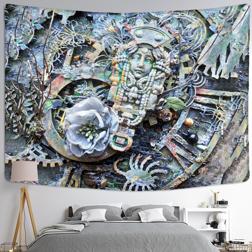 Colorful Human Face Tarot Card Tapestry Wall Hanging Relief Psychedelic Witchcraft Grim Reaper Tapiz Hippie Home Decor