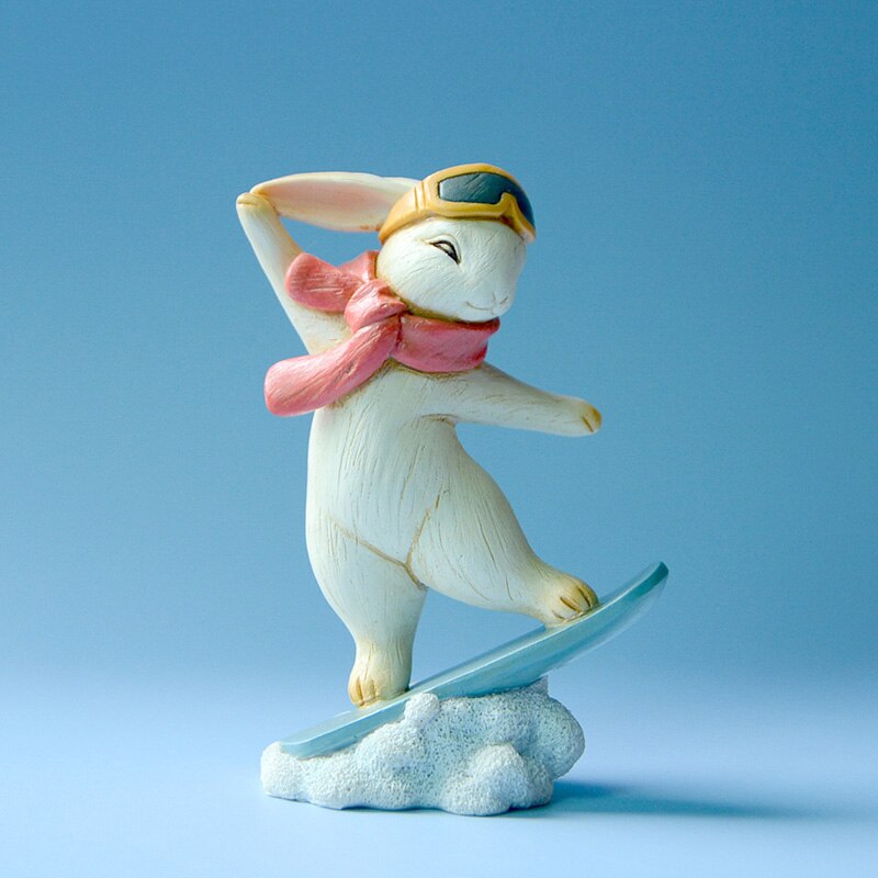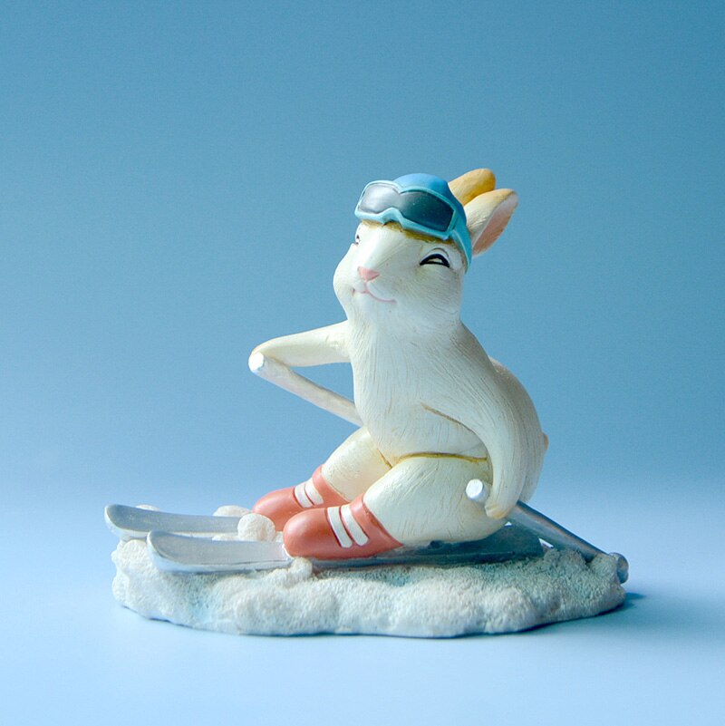 Creative Lovely Rabbit Ornaments Winter Games Competition Sports Figurine Skiing Skating Home Decoration Birthday Gifts