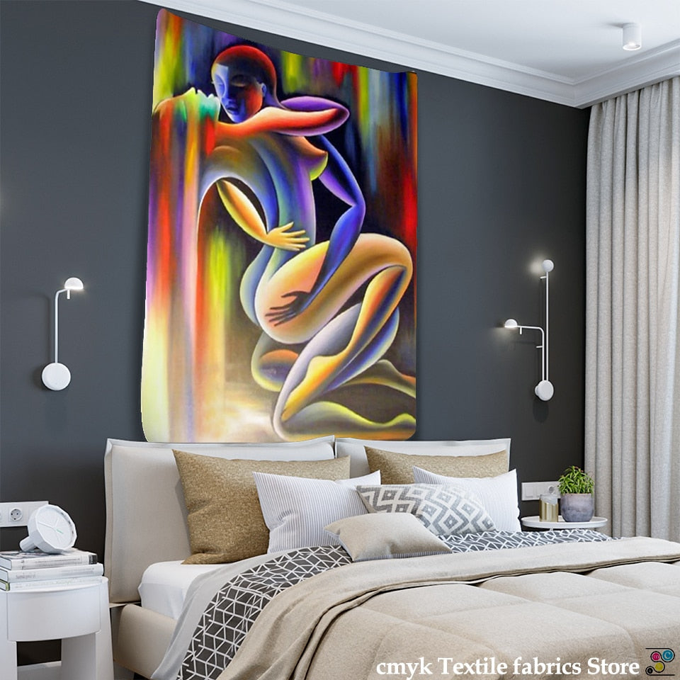 Creative Oil Painting Tapestry Wall Hanging Bohemian Decorative Hippie Kiss Psychedelic  Abstract Carpet  Cloth  Halloween 515