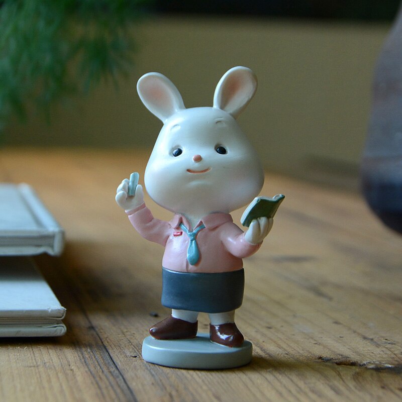 Creative Professional Bunny Ornament Rabbit Figurine Office Decoration Lovely Girl Gift Doll for Kids