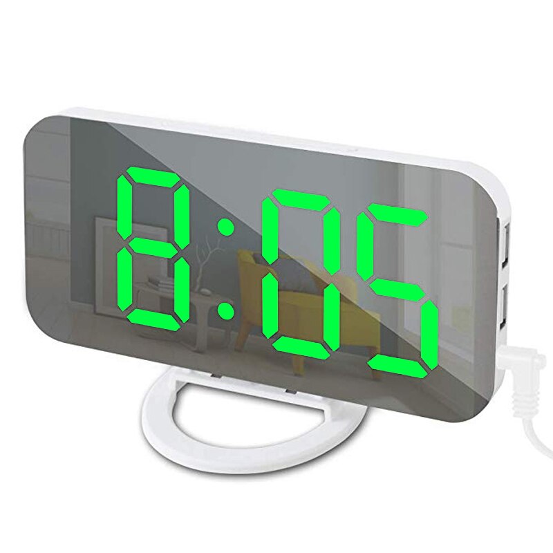 Digital LED Alarm Clock Mirror 2 USB Charger Ports Night Light LED Table Clock Snooze Function Adjustable Brightness Desk Clocks