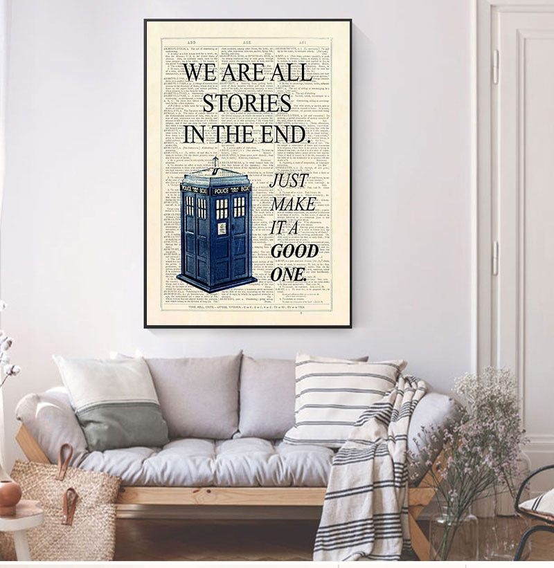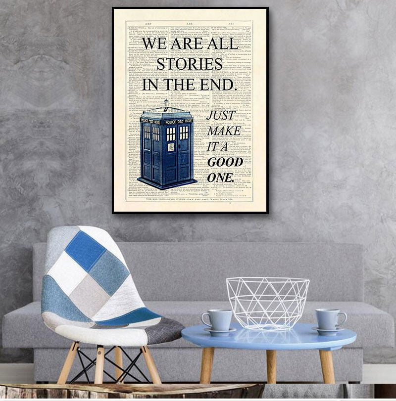 Dr Who Classic TV Show Poster Prints Tardis We Are All Stories In The End Dictionary Page Art Canvas Painting Picture Home Decor