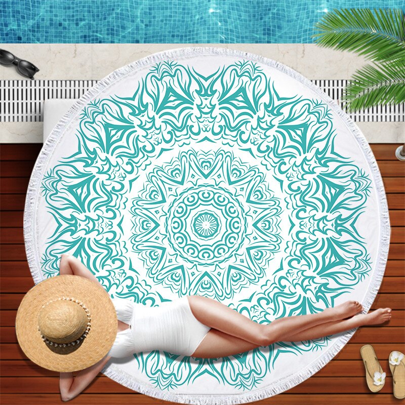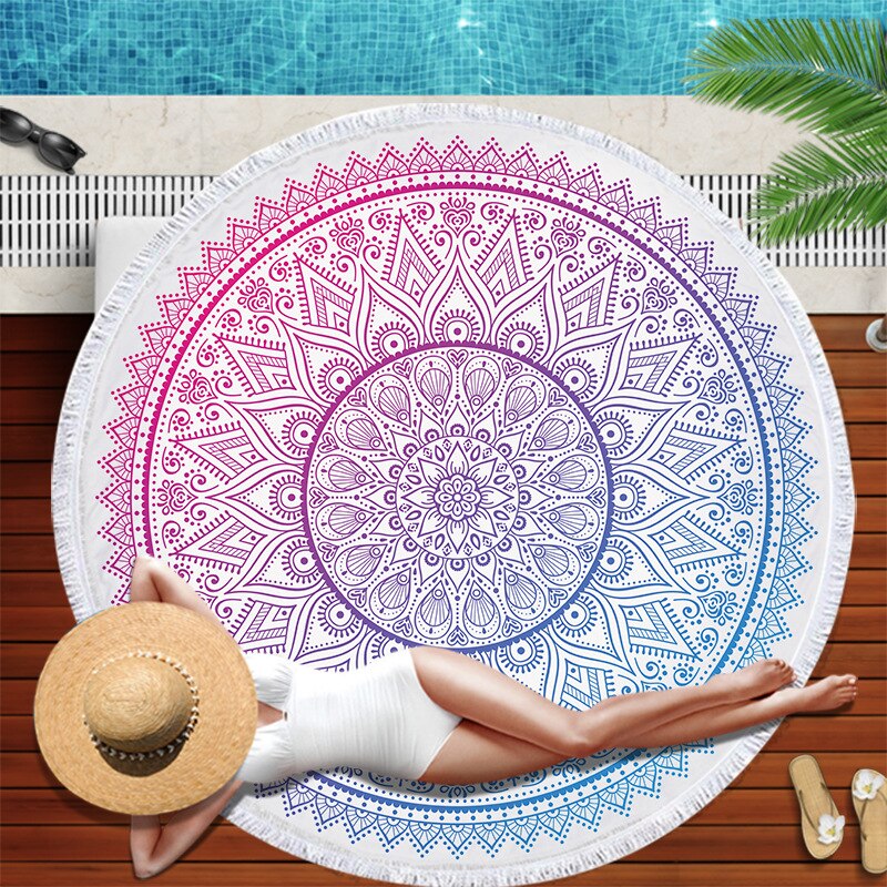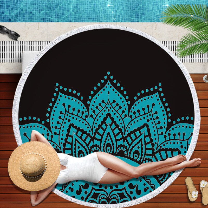 Dropshipping Chakra Beach Towel Tassel Toalla Mandala Tapestry Sunblock Round Cover-Up Bath Towel Lotus Bohemian Yoga Mat 150cm