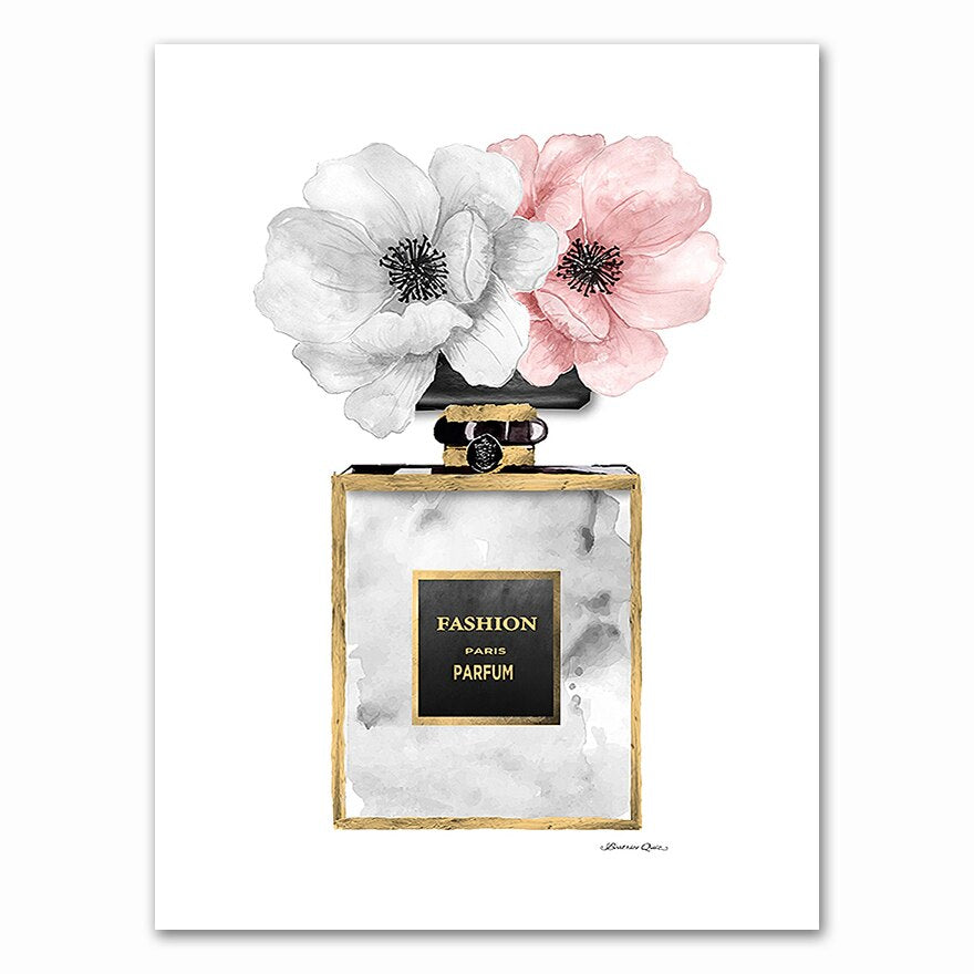 Fashion Black Dress Canvas Nordic Wall Art Perfume with Flower Print Painting Decoration Picture Home Decor Framed