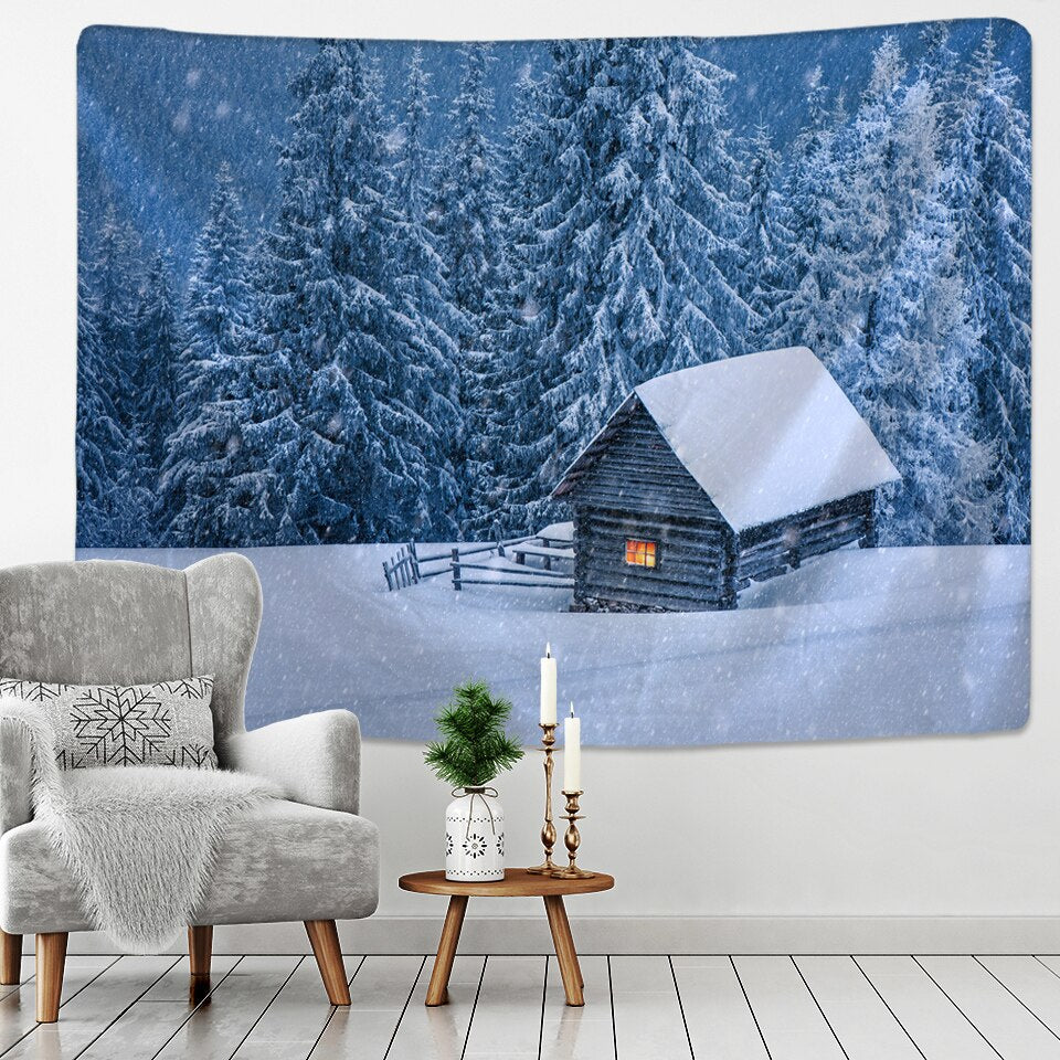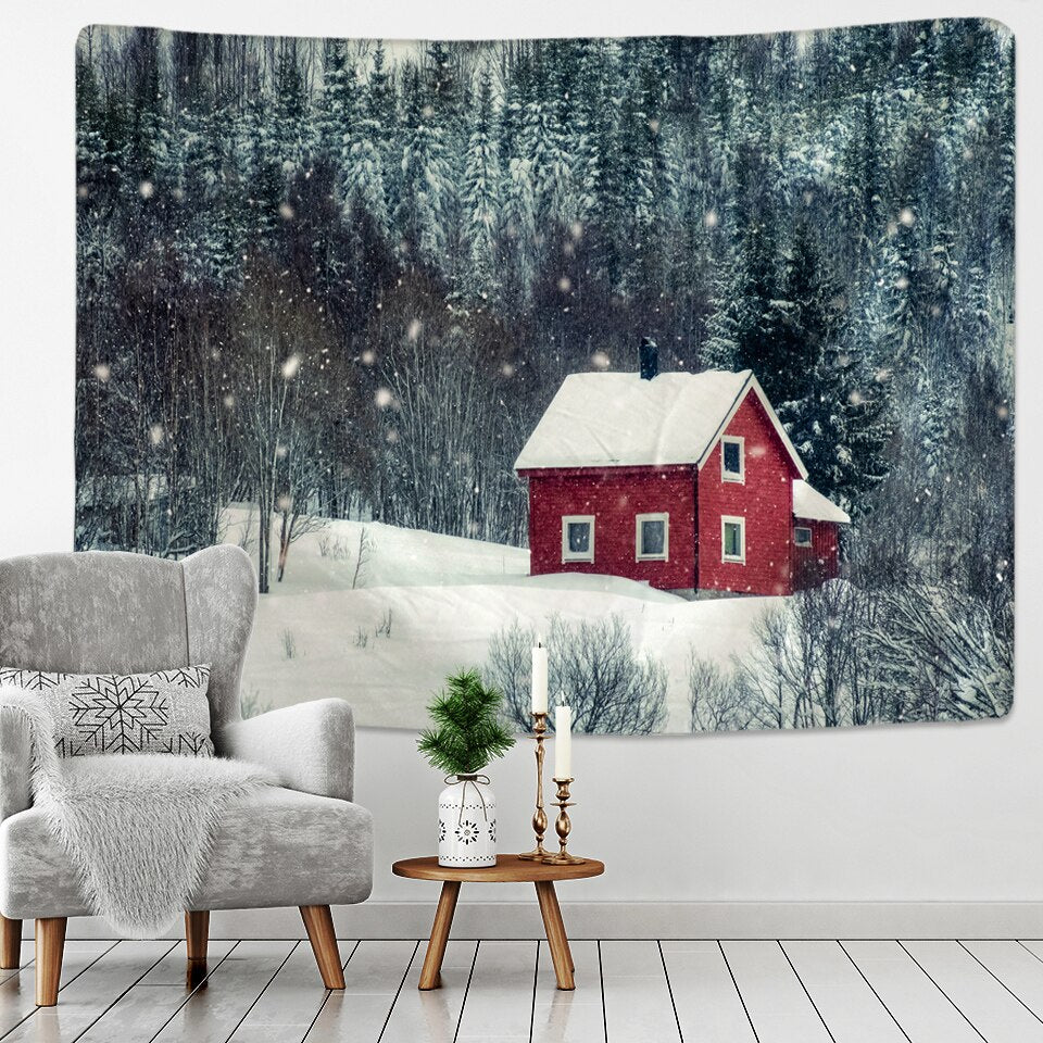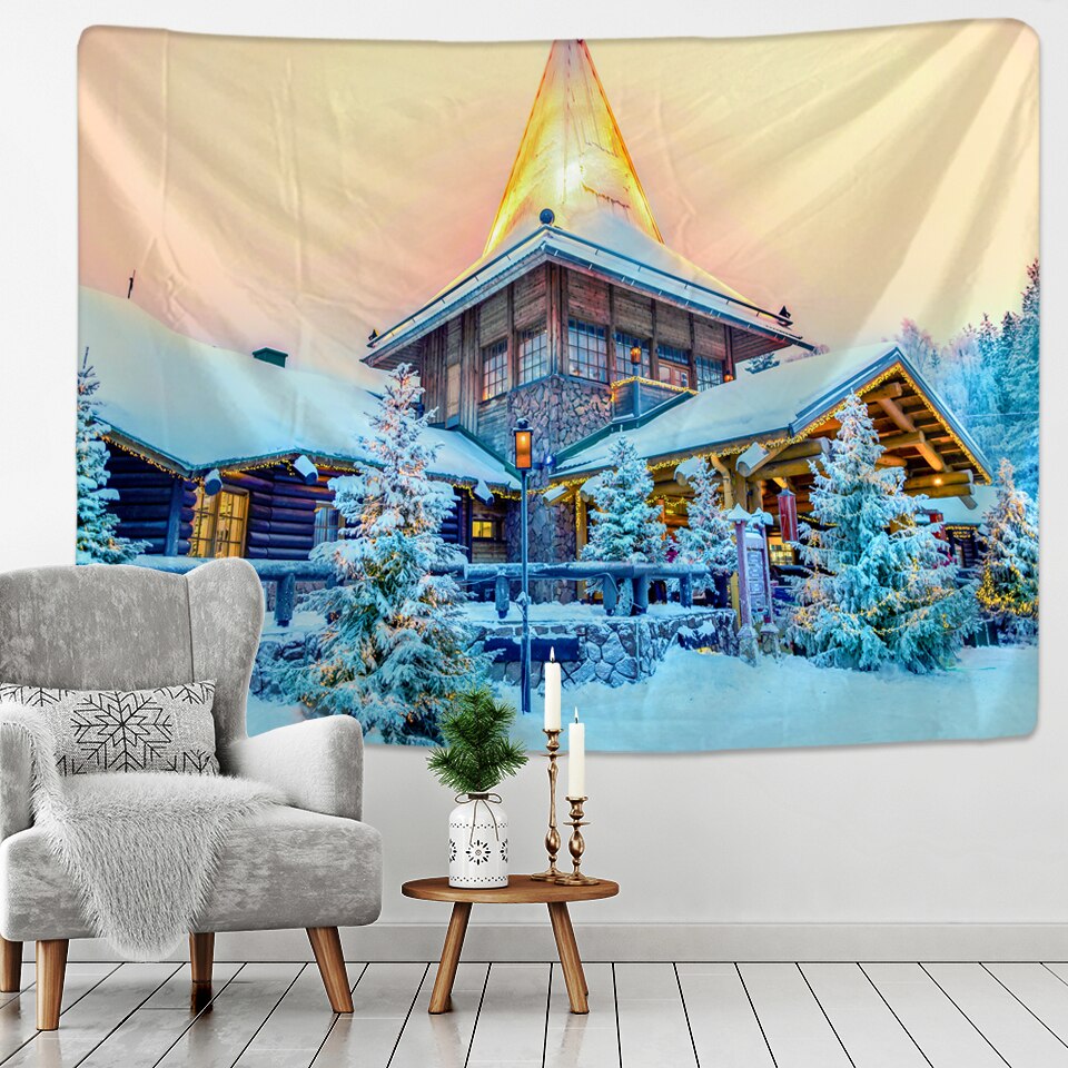 Fashion Christmas Wall Hangings Snow View Wooden House Hippie Mandala Indian Tapices Home Furnishing Decoration