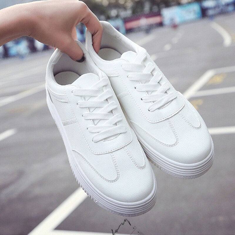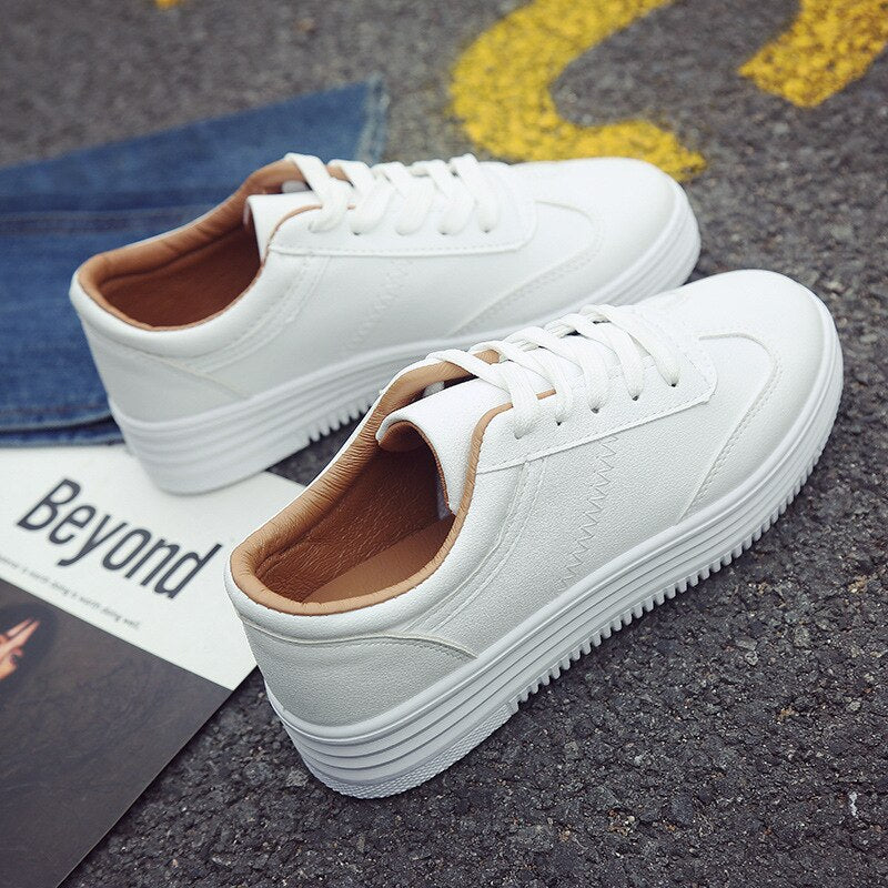 Fashion White Split Leather Women Chunky Sneakers White Shoes Lace Up Tenis Feminino Zapatos De Mujer Platform Women Casual Shoe