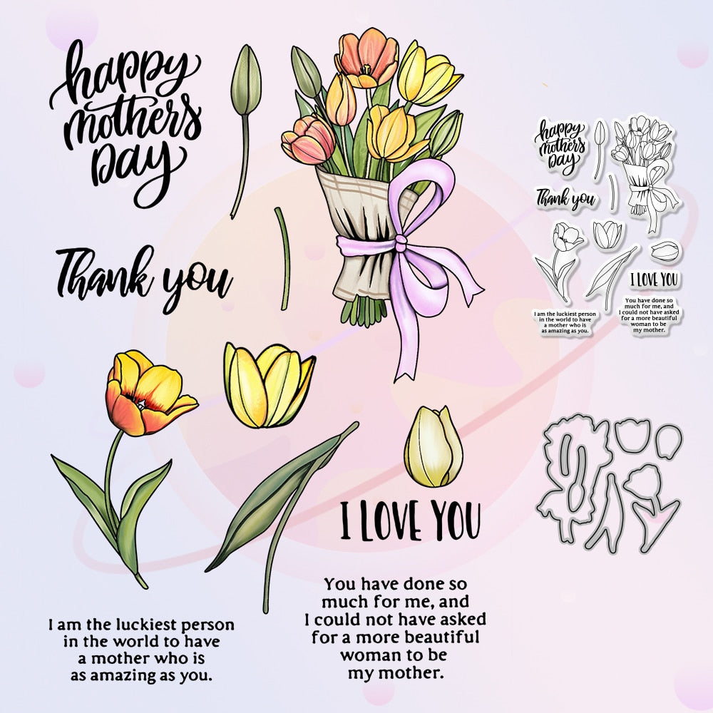 Flowers Tulip Cutting Dies Clear Stamp Mother's Day Gifts DIY Scrapbooking Cut Dies Stamps For Paper Cards Making Stecil Decor