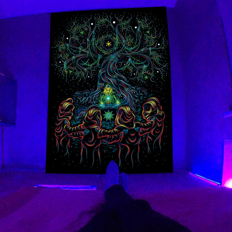 Fluorescent Tapestry European and American Black Light Hanging Cloth Poster Home Decoration Background Cloth Psychedelic Trippy