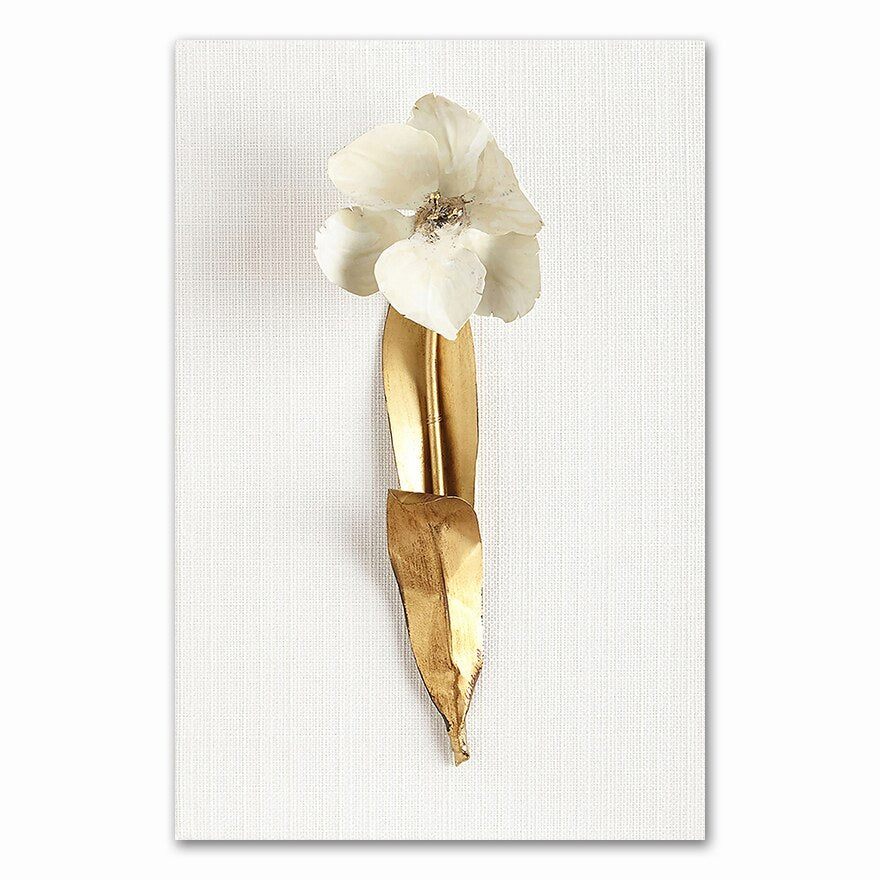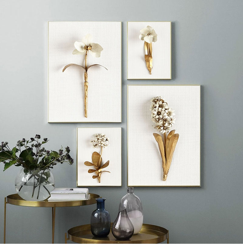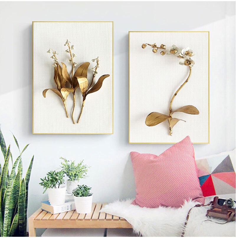 Golden plant leaves and flowers Wall art canvas painting Wall Pictures for Living Room Nordic Decoration Pictures morden decor