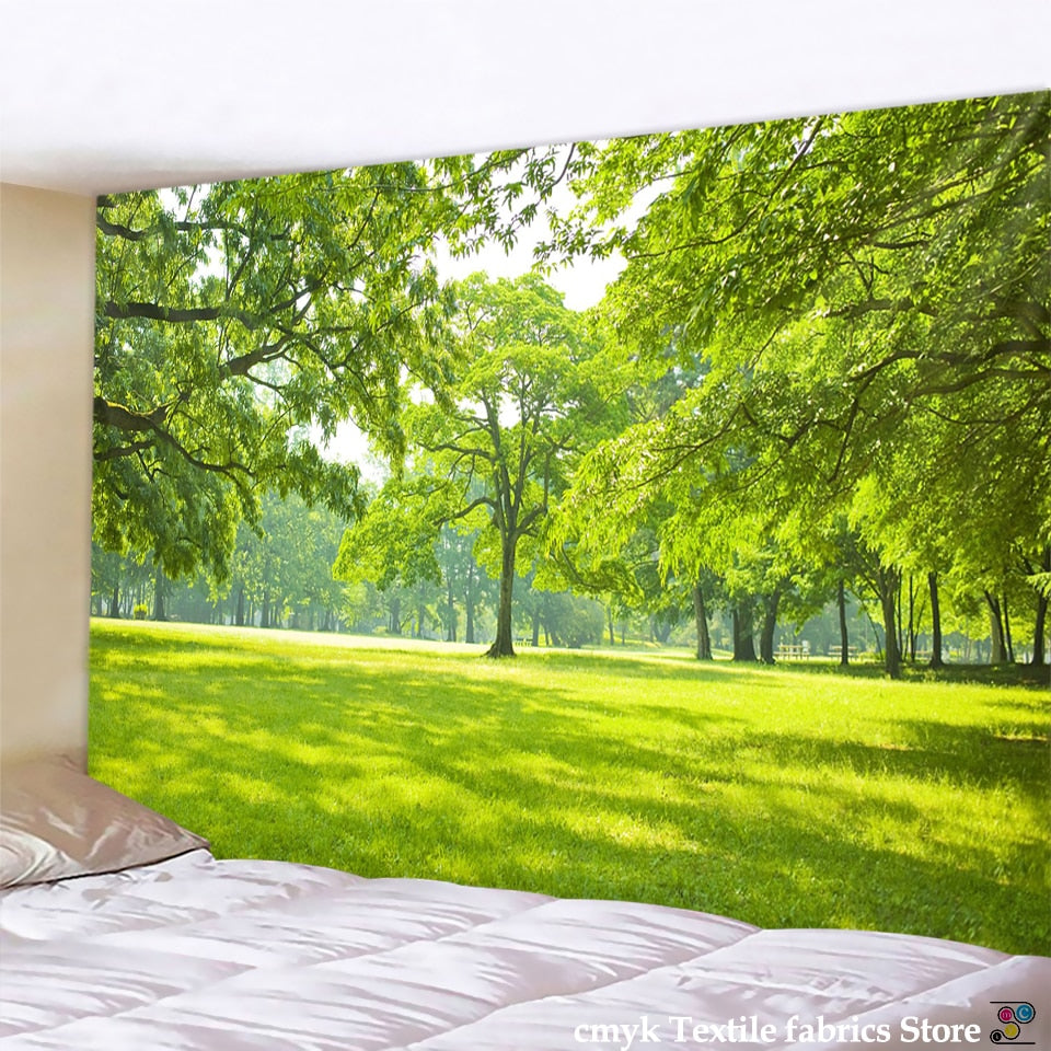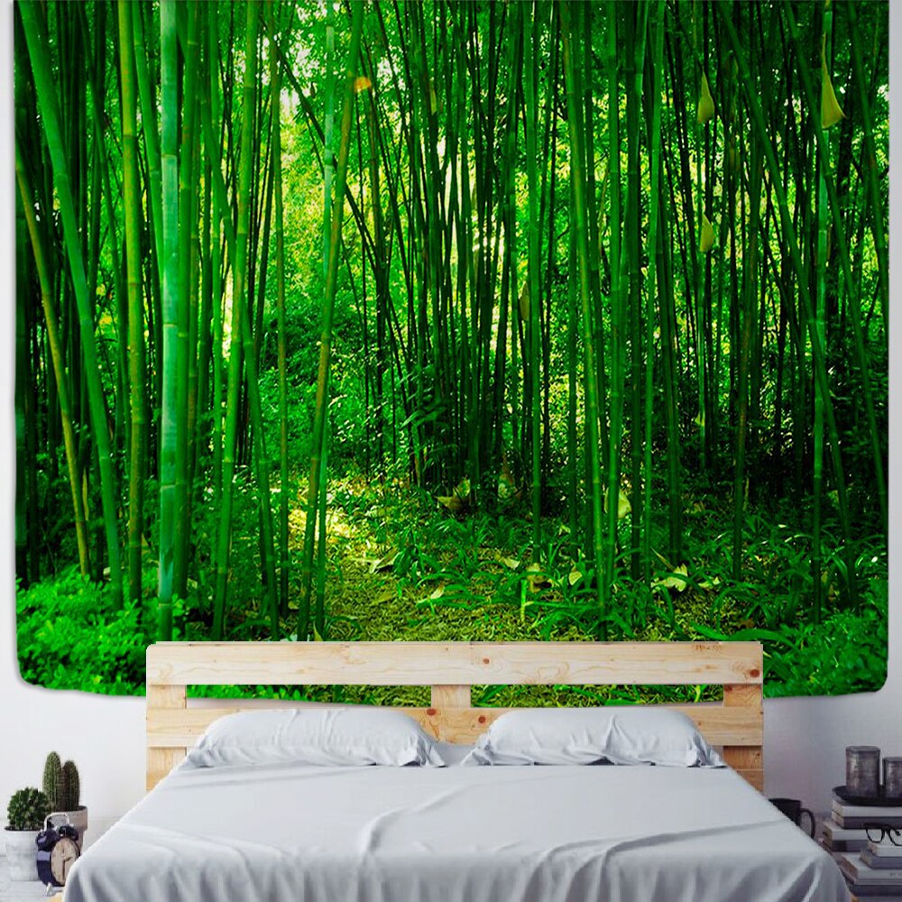 Green Bamboo Forest Nature Tapestry Design Wood Grain Tapestry Forest Wall Hanging  Living Room Decoration Home Decor Tree Wall