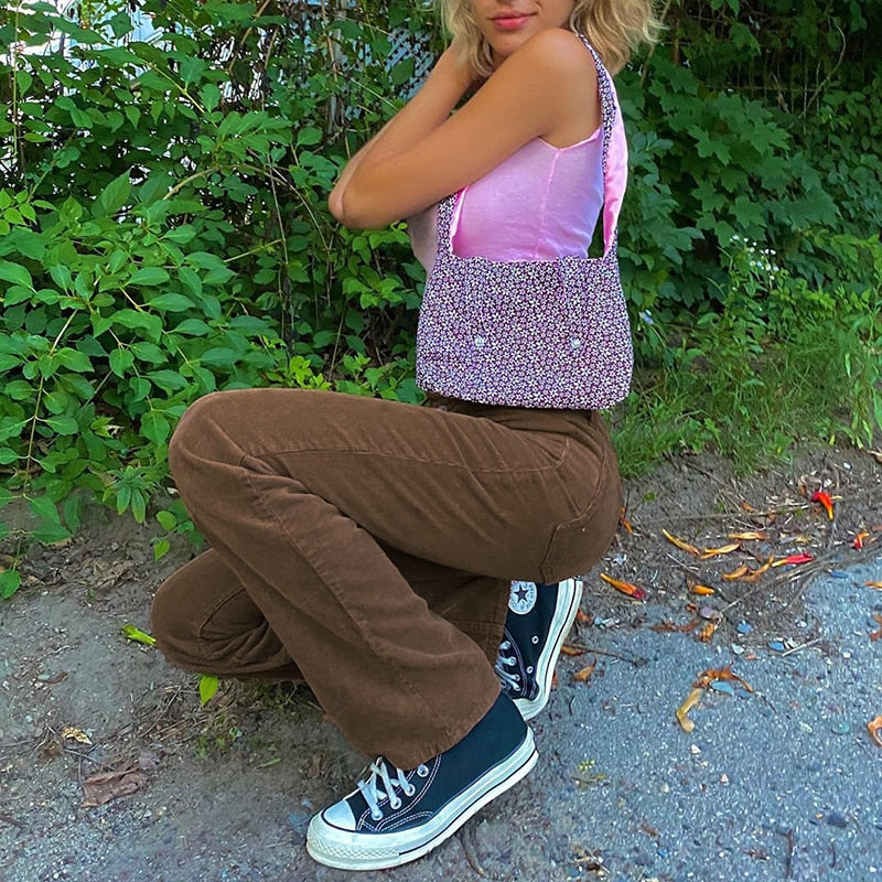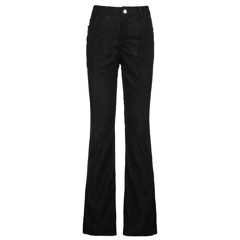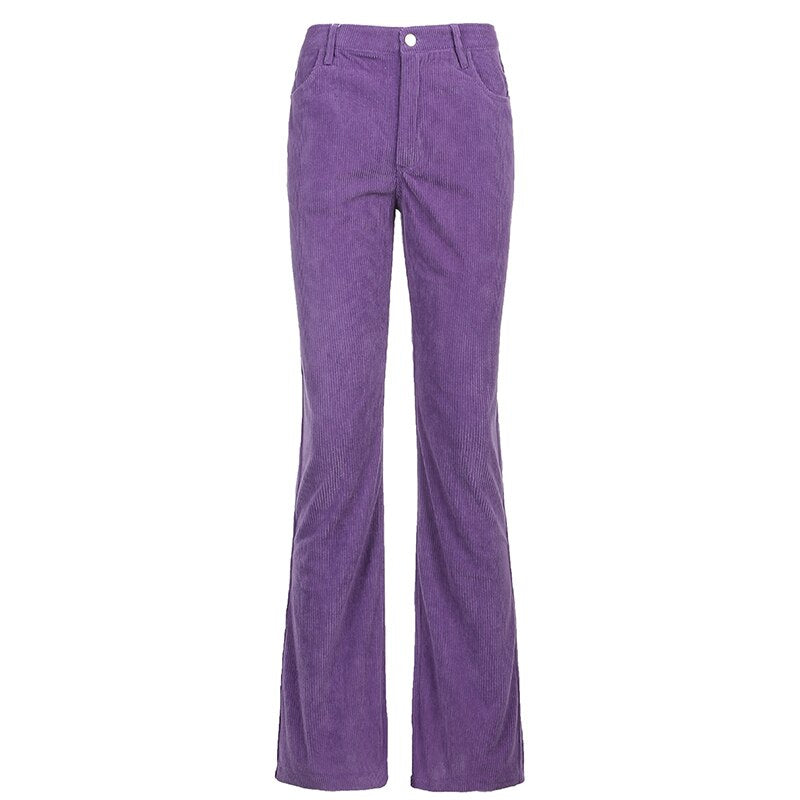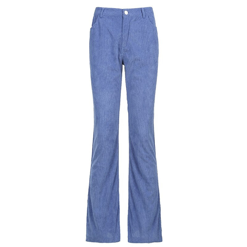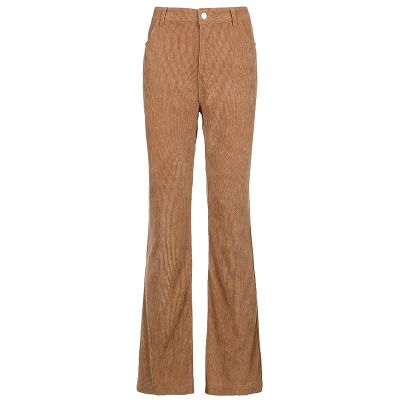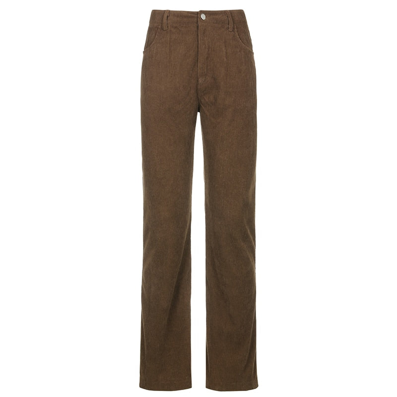 HEYounGIRL Autumn Casual Corduroy Brown Long Trousers Women Skinny Mid Waist Pants Capris Fashion Thin 90s Pocket Sweatpants