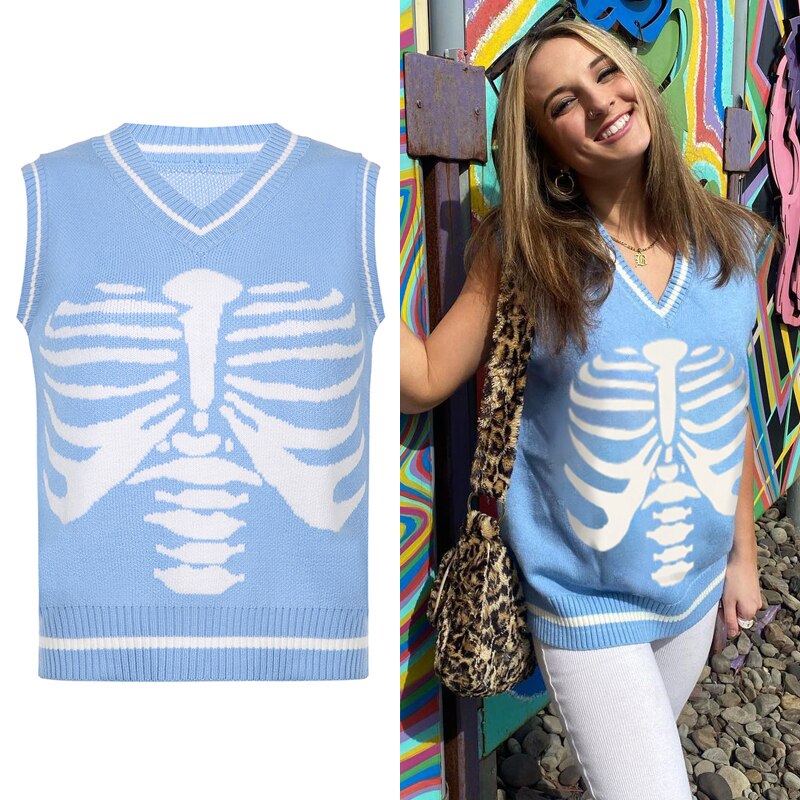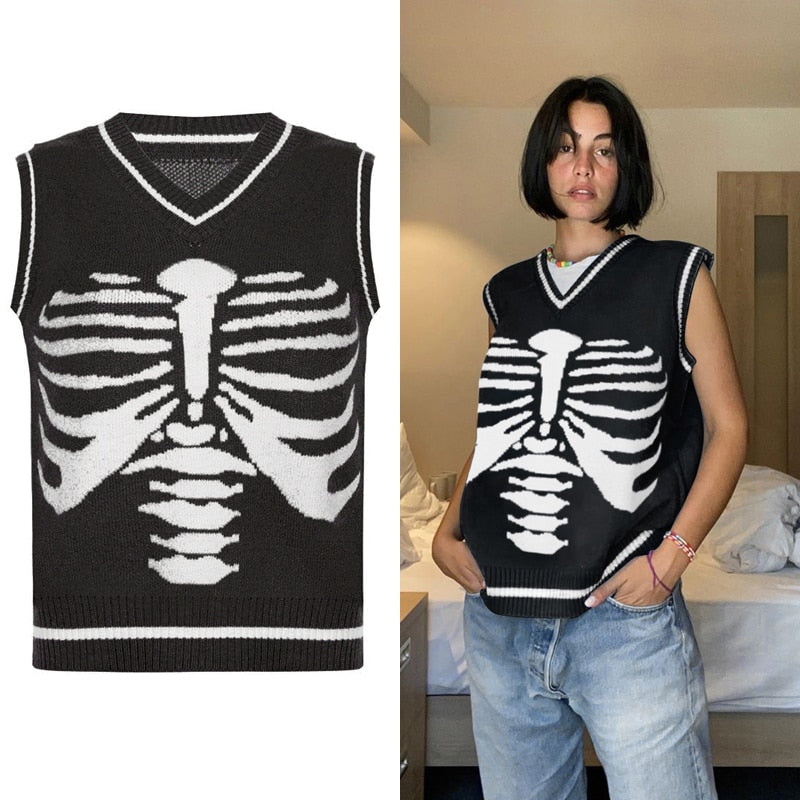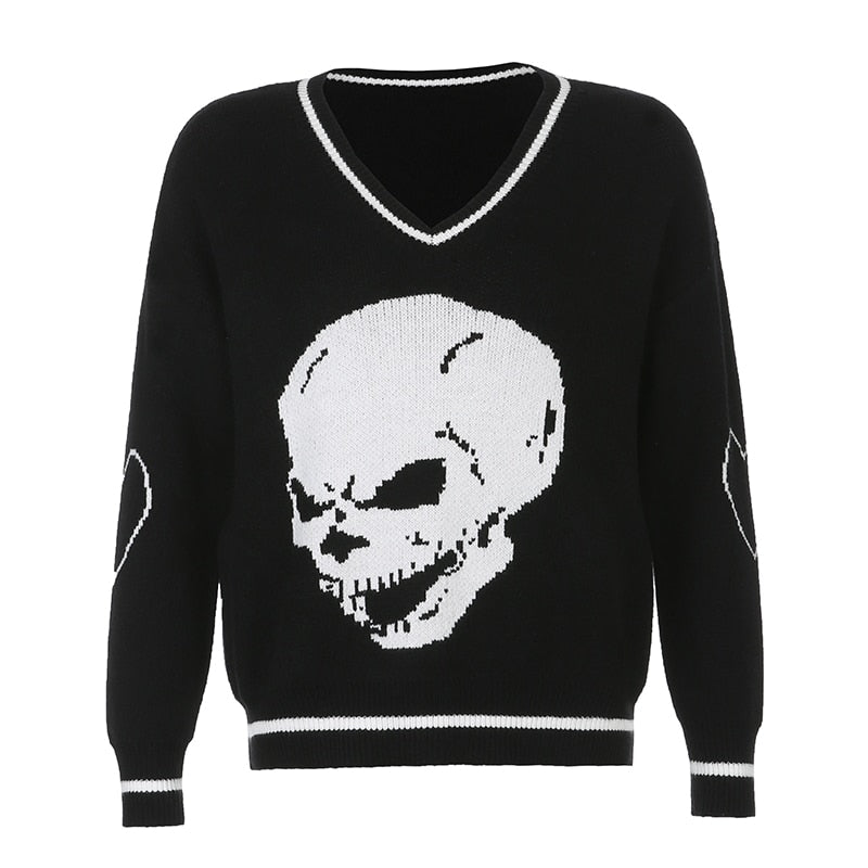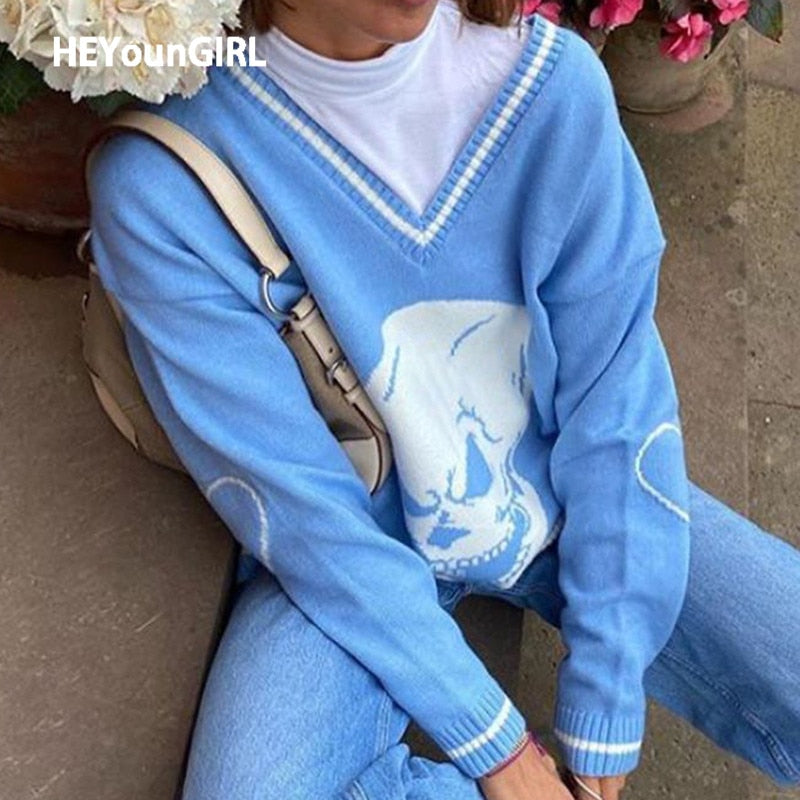HEYounGIRL Autumn Winter Print V Neck Knitted Jumpers Casual Long Sleeve Harajuku Sweater Women Streetwear Pullover Female 2021