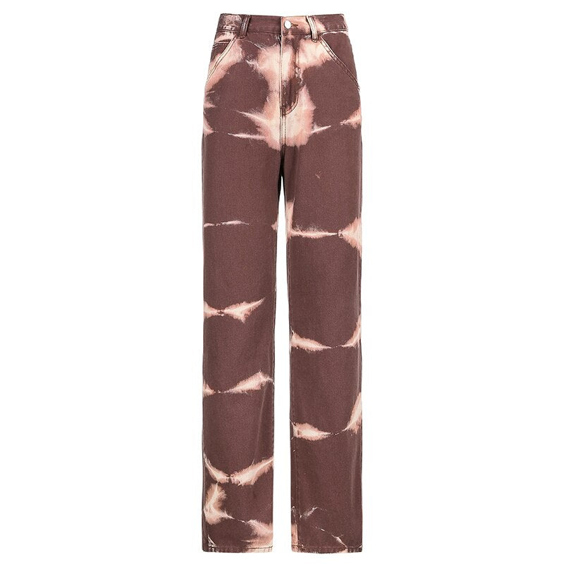 HEYounGIRL Brown Gray Tie Dye Print Harajuku Jeans Women Casual Skinny High Waist Pants Ladies Streetwear Denim Trousers Hip Hop