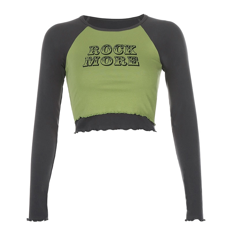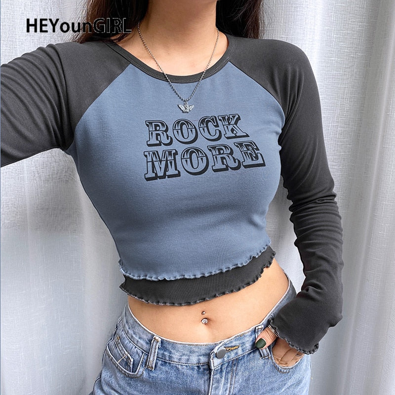 HEYounGIRL Fake 2 Pieces Letter Print Cotton Tshirt Women Autumn Casual Crop Top T Shirt Ladies Fashion Basic T-shirt Winter