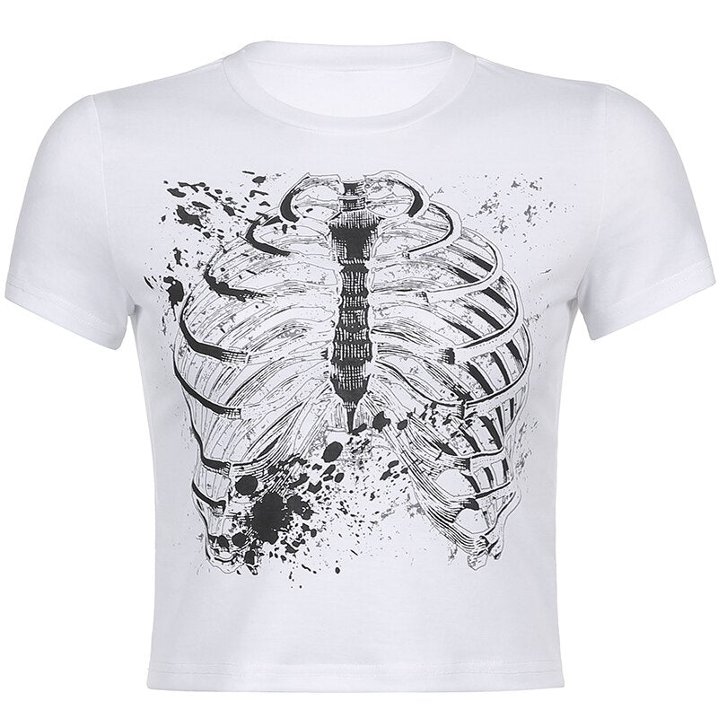 HEYounGIRL Harajuku Punk Black Cropped Tshirt Women Summer Short Sleeve T Shirt Ladies Basic Printed Fashion Tee Shirt 2021