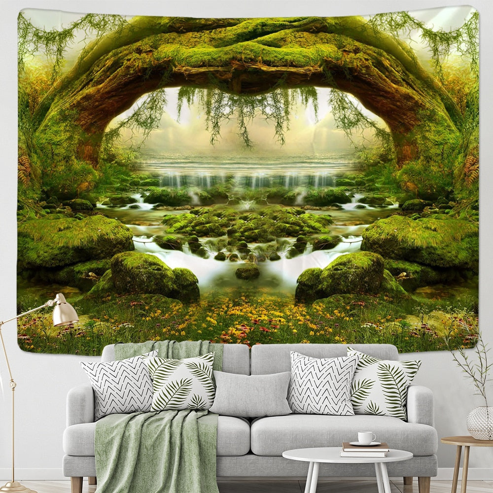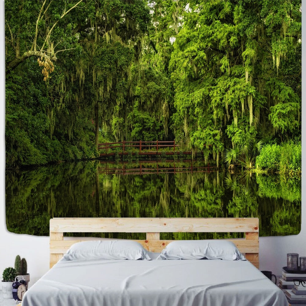 Hot Sale Forest Tapestry Woods Hanging Cloth River And Bridge Background Cloth Tapestry Home Decoration