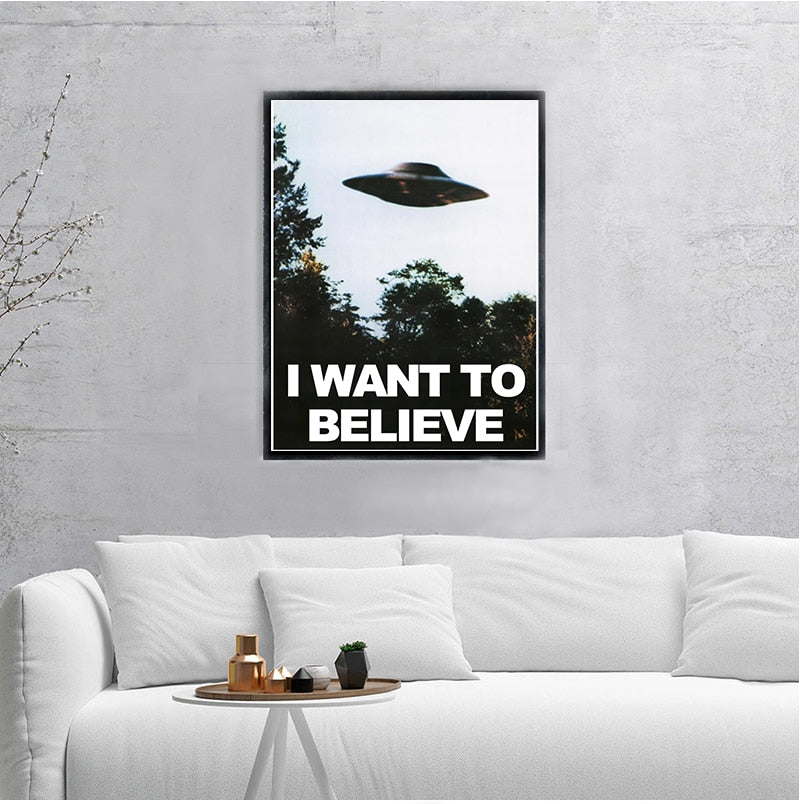 I WANT TO BELIEVE - The X Files Art Silk Or Canvas  UFO TV Series  Print Canvas Painting Decorative Picture Home Decor