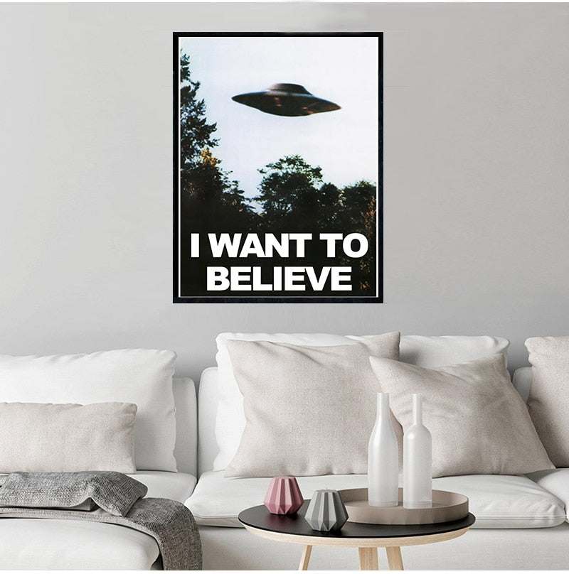 I WANT TO BELIEVE - The X Files Art Silk Or Canvas UFO TV Series Print Canvas Painting Decorative Picture Home Decor