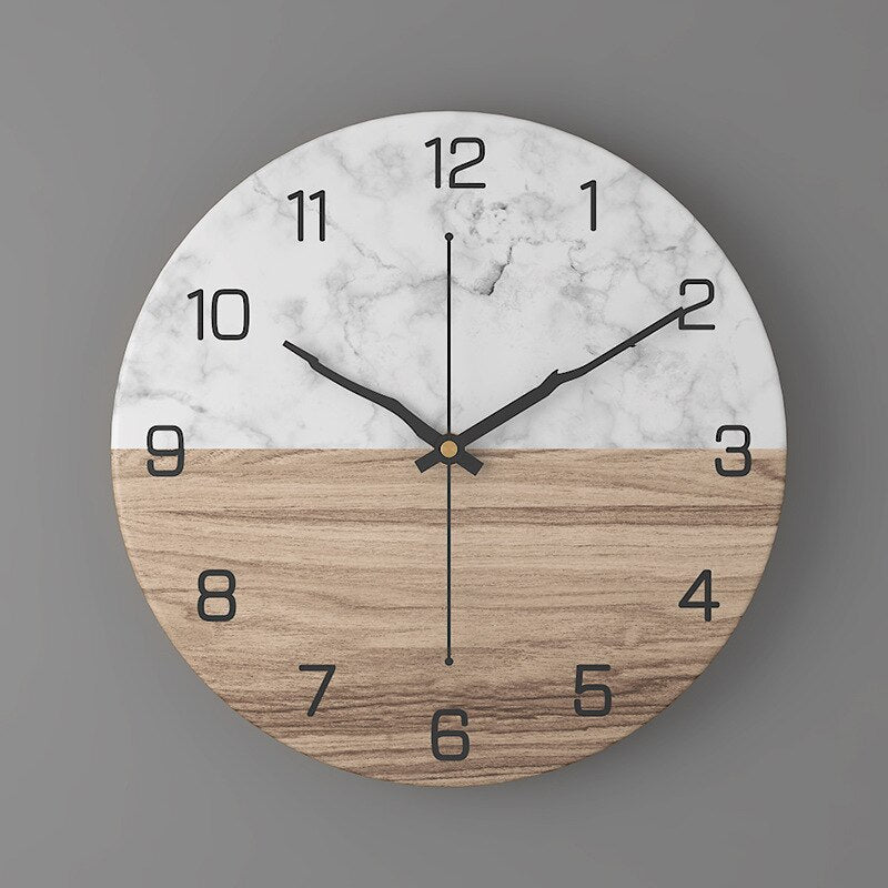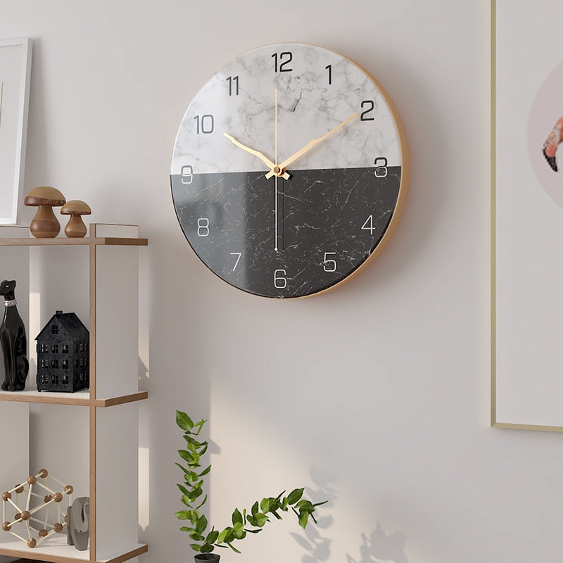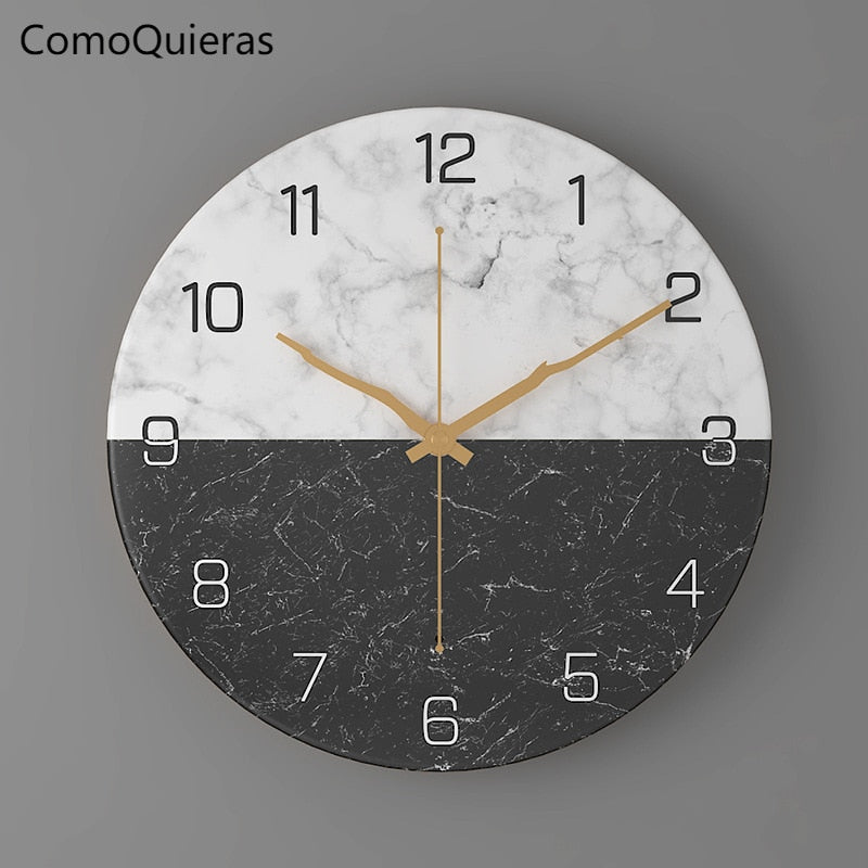 Imitation Marble Clock European Style  Home Living Room Fashion Creative Wall Clock Bedroom 30cm Metal Digital Clock