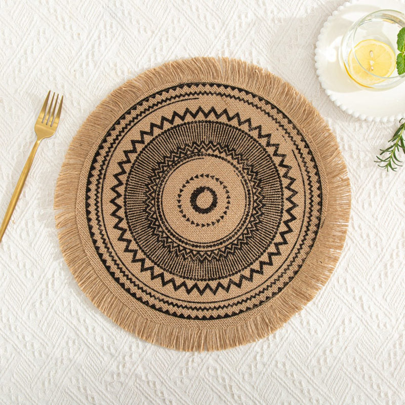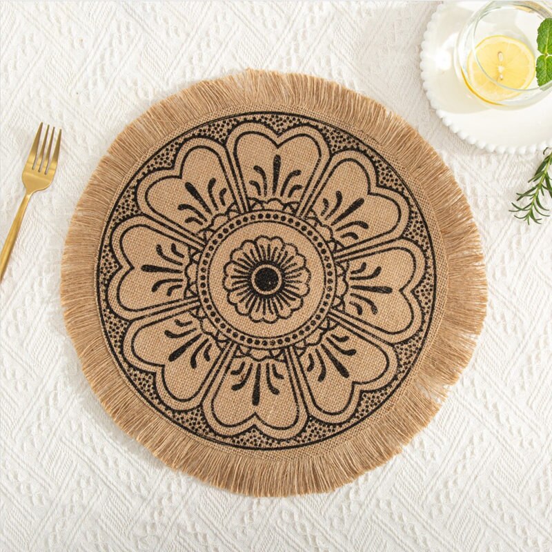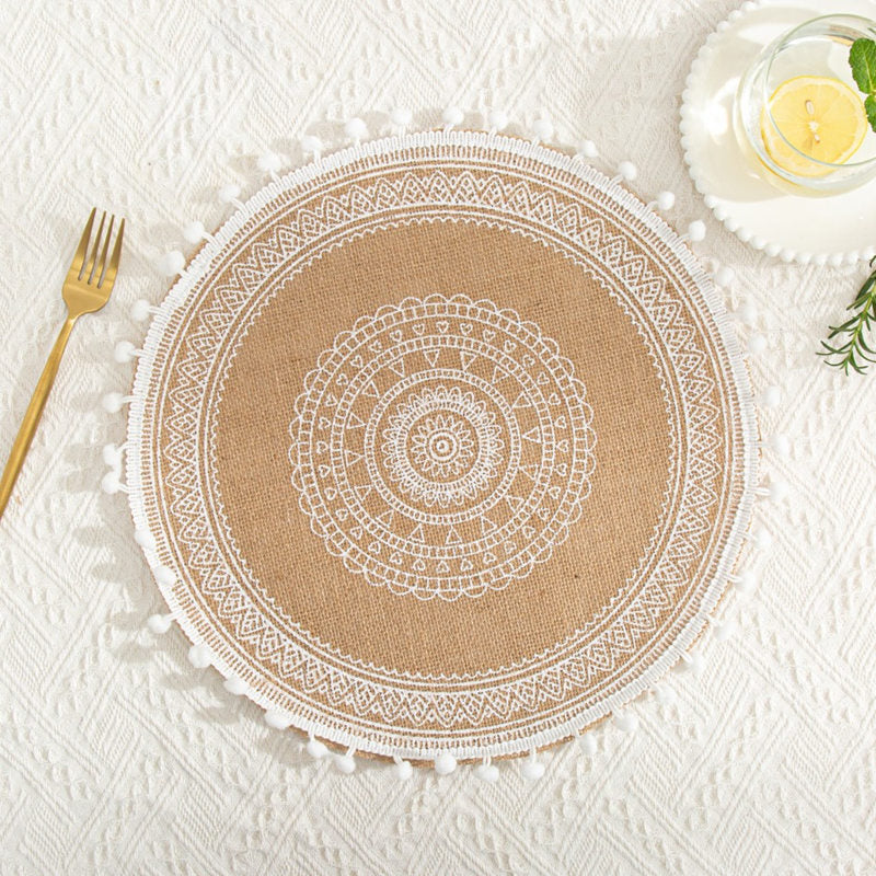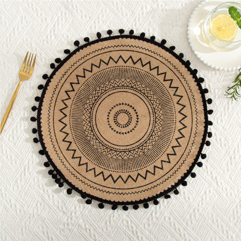 INS Jute Round Placemats Boho Tassels Table Mats Heat Insulation Pads Coffee Cup Mat Rustic Farmhouse Kitchen Decor Photo Props
