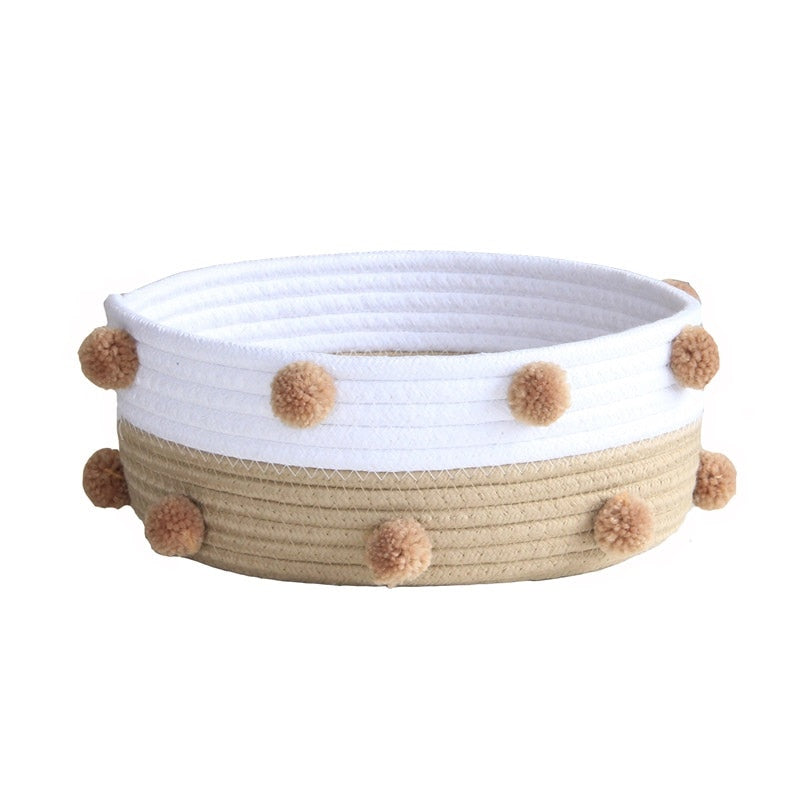 INS Nordic Cotton Rope Woven Storage Baskets Dirty Clothes Laundry Basket With Pompom Sundries Desktop Sundries Organizer Hamper